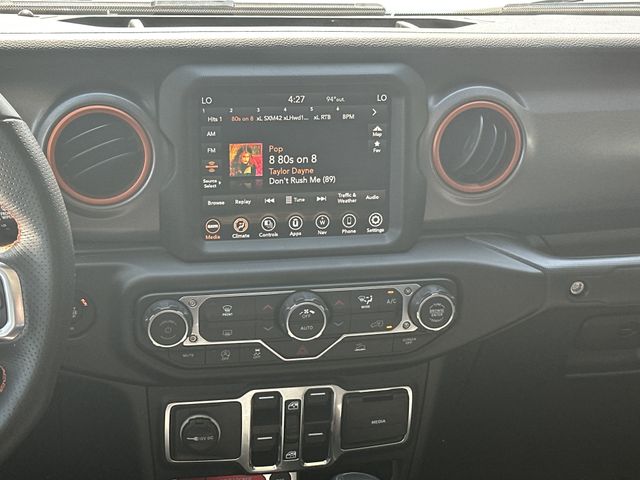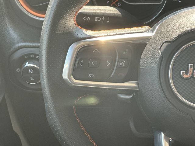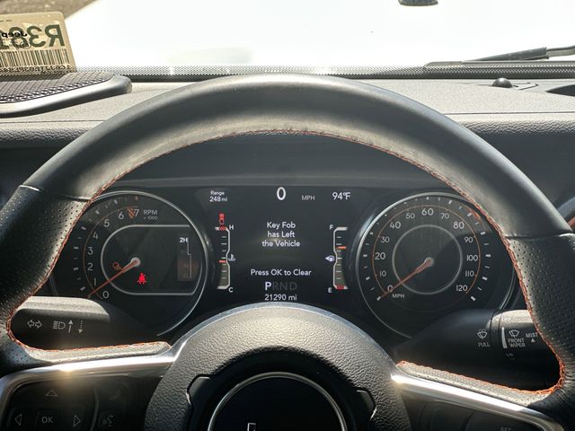 This vehicle comes well equipped with Quick Order Package 24D Mojave, Trailer Tow Package (240 Amp Alternator, Class IV Receiver Hitch, Heavy-Duty Engine Cooling, and Trailer Hitch Zoom), 4D Crew Cab, 4WD, 4-Wheel Disc Brakes, 4.10 Rear Axle Ratio, 9 Speakers, 97 MPH Vehicle Max Speed Calibration, ABS brakes, Air Conditioning, Alloy wheels, AM/FM radio: SiriusXM, Apple CarPlay/Android Auto, Auto-dimming Rear-View mirror, Automatic temperature control, Black 3-Piece Hard Top, Brake assist, Compass, Delay-off headlights, Driver door bin, Driver vanity mirror, Dual front impact airbags, Dual front side impact airbags, Electronic Stability Control, Emergency communication system, Freedom Panel Storage Bag, Front anti-roll bar, Front Bucket Seats, Front Center Armrest w/Storage, Front dual zone A/C, Front fog lights, Front reading lights, Fully automatic headlights, Garage door transmitter, Heated door mirrors, Heavy Duty Suspension w/Gas Shocks, Illuminated entry, Integrated roll-over protection, Leather steering wheel, Low tire pressure warning, Navigation System, Occupant sensing airbag, Outside temperature display, Panic alarm, ParkView Rear Back-Up Camera, Passenger door bin, Passenger vanity mirror, Power door mirrors, Power steering, Power windows, Premium Cloth Seats w/Sport Bolsters, Radio data system, Radio: Uconnect 4C Nav w/8.4" Display, Rear anti-roll bar, Rear reading lights, Rear Sliding Window, Rear Window Defroster, Remote keyless entry, Security system, Speed control, Split folding rear seat, Steering wheel mounted audio controls, Tachometer, Telescoping steering wheel, Tilt steering wheel, Traction control, Trip computer, Variably intermittent wipers, and Voltmeter Quick Order Package 24D Mojave, Trailer Tow Package (240 Amp Alternator, Class IV Receiver Hitch, Heavy-Duty Engine Cooling, and Trailer Hitch Zoom), 4D Crew Cab, 4WD, 4-Wheel Disc Brakes, 4.10 Rear Axle Ratio, 9 Speakers, 97 MPH Vehicle Max Speed Calibration, ABS brakes, Air Conditioning, Alloy wheels, AM/FM radio: SiriusXM, Apple CarPlay/Android Auto, Auto-dimming Rear-View mirror, Automatic temp