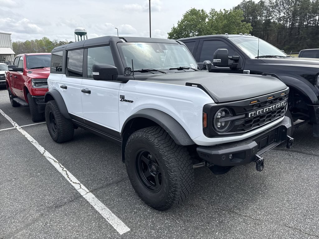 ** Super Clean **, **Local Trade In**, LEATHER TRIM, TOWING PKG, HARD TOP, 360 CAMERA, HEATED STEERING WHEEL, and WIRELESS CHARGING Equipment Group 354A Lux Package (10 Speakers w/Subwoofer, 12" LCD Capacitive Touchscreen w/Swipe Capability, 2 Smart Charging USB Ports In Dashboard, 360-Degree Camera, Adaptive Cruise Control, Additional Sound Deadening, Connected Built-In Navigation, Evasive Steering Assist, Front Parking Sensors, Heated Steering Wheel, Information on Demand Panel, Radio: B&O Sound System by Bang & Olufsen, Sideview Mirrors, Universal Garage Door Opener, and Wireless Charging Pad), 4-Wheel Disc Brakes, 7 Speakers, ABS brakes, Air Conditioning, AM/FM radio: SiriusXM with 360L, AM/FM Stereo, Auto High-beam Headlights, Automatic temperature control, Brake assist, Carbonized Gray Molded-In-Color Hard Top, Compass, Delay-off headlights, Driver door bin, Driver vanity mirror, Dual front impact airbags, Dual front side impact airbags, Electronic Stability Control, Emergency communication system: 911 Assist, Exterior Parking Camera Rear, Front anti-roll bar, Front Bucket Seats, Front Center Armrest, Front reading lights, Front Row Top Panels Storage Bag, Front wheel independent suspension, Fully automatic headlights, Hard Top Sound Deadening Headliner, Heated door mirrors, Illuminated entry, Integrated roll-over protection, Low tire pressure warning, Navigation System, Occupant sensing airbag, Outside temperature display, Overhead airbag, Overhead console, Panic alarm, Passenger door bin, Passenger vanity mirror, Power door mirrors, Power steering, Power windows, Radio data system, Rear-Window Defroster & Washer, Remote keyless entry, Security system, SiriusXM Radio w/360L, Split folding rear seat, Steering wheel mounted audio controls, SYNC 4, Tachometer, Telescoping steering wheel, Tilt steering wheel, Traction control, Trip computer, and Variably intermittent wipers Shottenkirk Ford of Jasper is pleased to offer you this exceptional 2023 Ford Bronco. This Wildtrak Bronco Exterior is finished in Oxford White and the interior is finished in Black Vinyl.