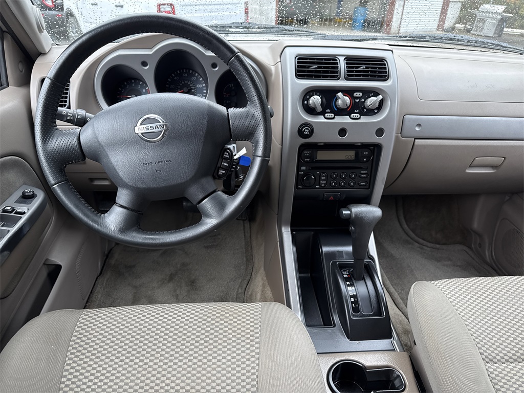 **Local Trade In**, **One Owner**, **Clean Carfax**, **Low Mileage**, **Heated Seats, **Front bucket seats with center console**, **Bluetooth/Hands Free**, **Rear back up camera**, **Remote start**, and **SIRIUS SAT. RADIO** 16" Aluminum Alloy Wheels, 4.64 Rear Axle Ratio, 6 Speakers, ABS brakes, Air Conditioning, Alloy wheels, AM/FM CD, AM/FM radio, Bumpers: body-color, CD player, Compass, Driver door bin, Dual front impact airbags, Front anti-roll bar, Front Bucket Seats, Front Center Armrest w/Storage, Front fog lights, Front reading lights, Front Reclining Bucket Seats, Front wheel independent suspension, Illuminated entry, Leather steering wheel, Microfilter, Outside temperature display, Panic alarm, Passenger cancellable airbag, Passenger door bin, Passenger vanity mirror, Power door mirrors, Power steering, Power windows, Rear anti-roll bar, Rear step bumper, Rear window defroster, Remote keyless entry, Roof rack, Speed control, Tachometer, Tilt steering wheel, and Variably intermittent wipers Shottenkirk Ford of Jasper is pleased to offer you this exceptional 2002 Nissan Frontier. This SE Frontier Exterior is finished in Sand Dune Clearcoat Metallic and the interior is finished in Beige w/Premium Cloth Seat Trim. CARFAX One-Owner. Clean CARFAX.