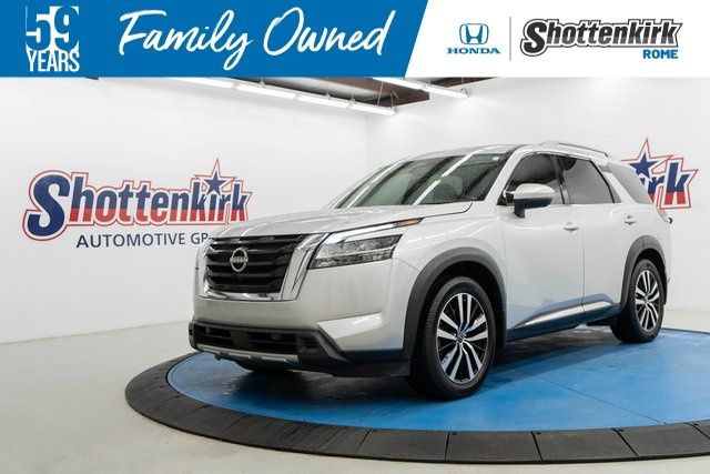 Brilliant Silver Metallic 2023 Nissan Pathfinder Platinum FWD 9-Speed Automatic V6 BLUETOOTH, LEATHER INTERIOR, ALLOY WHEELS, POWER DRIVER'S SEAT, LCD DISPLAY SCREEN, REAR BACK UP CAMERA, LOW MILES, WELL MAINTAINED, FULLY SERVICED AND DETAILED, LOCAL TRADE IN.