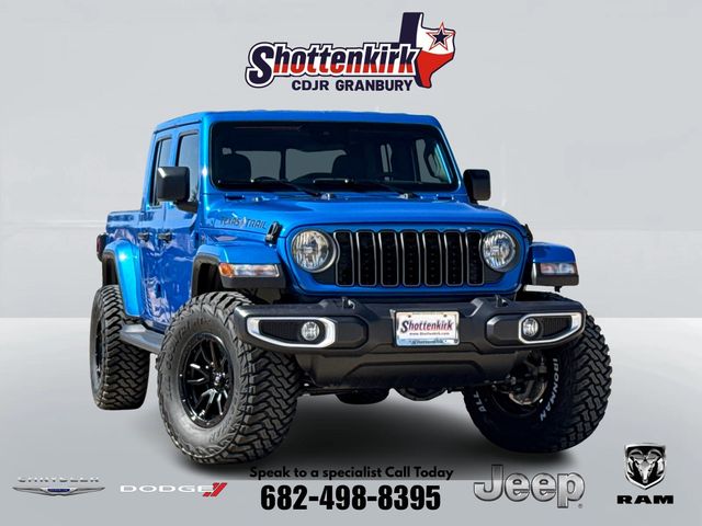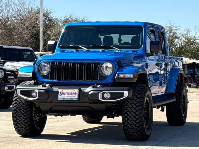 2025 Jeep Gladiator Sport 4D Crew Cab Hydro Blue Pearlcoat 4WD 8-Speed Automatic 3.6L V6 24V VVT This vehicle comes well equipped with ABS brakes, Compass, Electronic Stability Control, Illuminated entry, Low tire pressure warning, ParkView Rear Back-Up Camera, Remote keyless entry, and Traction control ABS brakes, Compass, Electronic Stability Control, Illuminated entry, Low tire pressure warning, ParkView Rear Back-Up Camera, Remote keyless entry, Traction control, 110 MPH Vehicle Max Speed Calibration, 12.3" Touchscreen Display, 3.73 Rear Axle Ratio, 4-Wheel Disc Brakes, 4G LTE Wi-Fi Hot Spot, 8 Speakers, Air Conditioning, Alexa Built-In, AM/FM radio: SiriusXM, Apple CarPlay, Apple CarPlay/Android Auto, Brake assist, Cloth Low-Back Bucket Seats, Connectivity - US/Canada, Delay-off headlights, Driver door bin, Driver vanity mirror, Dual front impact airbags, Dual front side impact airbags, Front anti-roll bar, Front Bucket Seats, Front Center Armrest w/Storage, Front fog lights, Front reading lights, Google Android Auto, Integrated roll-over protection, Normal Duty Suspension, Occupant sensing airbag, Outside temperature display