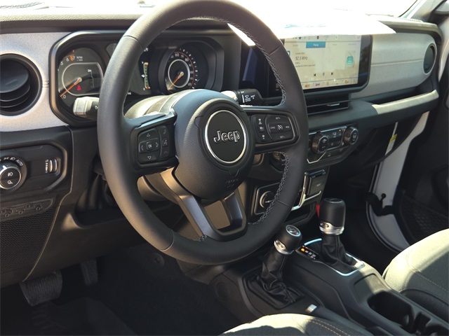 2025 Jeep Gladiator Sport 4D Crew Cab Bright White Clearcoat 4WD 8-Speed Automatic 3.6L V6 24V VVT This vehicle comes well equipped with Gladiator Sport, 4D Crew Cab, 3.6L V6 24V VVT, 8-Speed Automatic, 4WD, Bright White Clearcoat, and Black Cloth Convenience Group (Corning Gorilla Glass, Daytime Running Lamp System, Emergency/Assistance Call, Front Door Locks 2-Door Passive Entry, Heated Front Seats, Heated Steering Wheel, Remote Start System, and Universal Garage Door Opener), Max Tow Package w/4.10 Axle Ratio (110 MPH Vehicle Max Speed Calibration, 4.10 Rear Axle Ratio, Anti-Spin Differential Rear Axle, Black Molded-In-Color Fender Flares (2-Piece), Class IV Receiver Hitch, Conventional Differential Front Axle, Dana M210 Wide Front Axle, Dana M220 Wide Rear Axle, and Heavy-Duty Engine Cooling), Quick Order Package 24S Sport S (Advanced Brake Assist, Automatic Headlamps, Deep Tint Sunscreen Windows, Enhanced Adaptive Cruise Control, Full Speed Forward Collision Warning Plus, Normal Duty Plus Suspension, Power Heated Mirrors, Premium Wrapped Steering Wheel, Security Alarm, Sun Visors w/Illuminated Vanity Mirrors, and Wheels: 17" x 7.5" Gray), Gladiator Sport, 4D Crew Cab, 3.6L V6 24V VVT, 8-Speed Automatic, 4WD, Bright White Clearcoat, Black Cloth, 12.3" Touchscreen Display, 3.73 Rear Axle Ratio, 4-Wheel Disc Brakes, 4G LTE Wi-Fi Hot Spot, 8 Speakers, ABS brakes, Air Conditioning, Alexa Built-In, AM/FM radio: SiriusXM, Apple CarPlay, Apple CarPlay/Android Auto, Black 3-Piece Hard Top, Brake assist, Cloth Low-Back Bucket Seats, Compass, Connectivity - US/Canada, Delay-off headlights, Driver door bin, Driver vanity mirror, Dual front impact airbags, Dual front side impact airbags, Electronic Stability Control, Freedom Panel Storage Bag, Front anti-roll bar, Front Bucket Seats, Front Center Armrest w/Storage, Front fog lights, Front License Plate Bracket, Front reading lights, Google Android Auto, Illuminated entry, Integrated roll-over protection, Low tire pressure warning, MOPAR All-Weather Slush Mats, MOPAR Spray In Bedliner, Normal Duty Suspension, Occupant sensing airbag, Outside temperature display, Overhead airbag, Panic alarm, ParkView Rear Back-Up Camera, Passenger door bin, Passenger vanity mirror, Power steering, Power windows, Radio data system, Radio: Uconnect 5 w/12.3" Display, Rear anti-roll bar, Rear reading lights, Rear Sliding Window, Rear Window Defroster, Remote keyless entry, Speed control, Split folding rear seat, Steering wheel mounted audio controls, Tachometer, Telescoping steering wheel, Tilt steering wheel, Traction control, Trip computer, USB Host Flip, Variably intermittent wipers, Voltmeter, and Wheels: 17" x 7.5" Black Steel Styled.