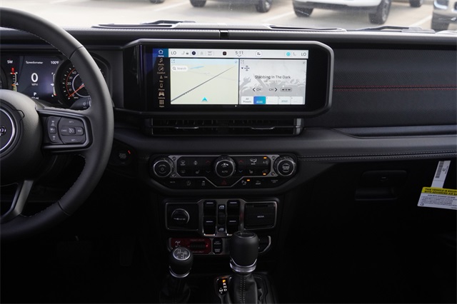 This Gladiator Rubicon comes well equipped with Quick Order Package 24Y Rubicon X (Blind Spot & Cross Path Detection, Body Color 3-Piece Hard Top, Full Length Floor Console Premium Armrest, GPS Navigation, Heated Front Seats, Heated Steering Wheel, Integrated Off-Road Camera, Leather Wrapped Park Brake Handle, Leather Wrapped Shift Knob, MOPAR Hardtop Headliner, ParkSense Rear Park Assist System, Power 4-Way Driver Lumbar Adjust, Power 4-Way Passenger Lumbar Adjust, Power Adjust 8-Way Driver Seat, Power Adjust 8-Way Front Passenger Seat, Power Adjust Nappa Leather Seats, Premium Door Trim Panel, Radio: Uconnect 5 Nav w/12.3" Display, Rear Armrest w/Cupholder Seat, Rear Sliding Window, USB Host Flip, 4G LTE Wi-Fi Hot Spot, Alexa Built-In, Alpine Premium Audio System, Apple CarPlay, Auto High Beam Headlamp Control, Auto-Dimming Rear-View Mirror, Bluetooth Wireless Speaker, Body Color Rubicon Highline Flare, Connected Travel & Traffic Services, Connectivity - US/Canada, Freedom Panel Storage Bag, Google Android Auto, Integrated Voice Command w/Bluetooth, Rear Window Defroster, SiriusXM Radio Service, SiriusXM w/360L, Steel Front Bumper, and Universal Garage Door Opener), Gladiator Rubicon, 4D Crew Cab, 3.6L V6 24V VVT, 8-Speed Automatic, 4WD, Anvil Clearcoat, Black Leather, Wheels: 17" x 7.5" Machined/Painted Black, 12.3" Touchscreen Display, 4-Wheel Disc Brakes, 4.10 Rear Axle Ratio, 8 Speakers, 97 MPH Vehicle Max Speed Calibration, ABS brakes, Air Conditioning, Alloy wheels, AM/FM radio: SiriusXM, Apple CarPlay/Android Auto, Automatic temperature control, Brake assist, Cloth Low-Back Bucket Seats, Compass, Delay-off headlights, Driver door bin, Driver vanity mirror, Dual front impact airbags, Dual front side impact airbags, Electronic Stability Control, Emergency communication system: Jeep Connect, Front anti-roll bar, Front Bucket Seats, Front Center Armrest w/Storage, Front dual zone A/C, Front fog lights, Front License Plate Bracket, Front reading lights, Fully automatic headlights, Heated door mirrors, Illuminated entry, Integrated roll-over protection, Low tire pressure warning, MOPAR All-Weather Slush Mats, MOPAR Spray In Bedliner, Occupant sensing airbag, Outside temperature display, Overhead airbag, Panic alarm, Passenger door bin, Passenger vanity mirror, Performance Suspension, Power door mirrors, Power steering, Power windows, Radio data system, Radio: Uconnect 5 w/12.3" Display, Rear anti-roll bar, Rear reading lights, Remote keyless entry, Security system, Speed control, Split folding rear seat, Steering wheel mounted audio controls, Tachometer, Telescoping steering wheel, Tilt steering wheel, Traction control, Trip computer, Variably intermittent wipers, and Voltmeter.