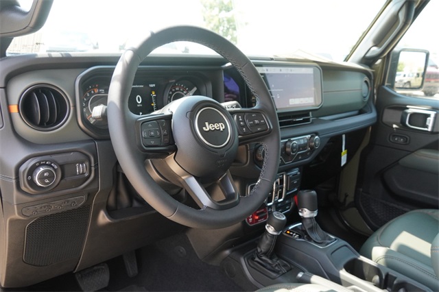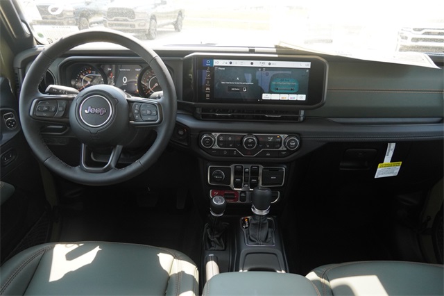 This Gladiator Mojave comes well equipped with Convenience Group (Heated Front Seats, Heated Steering Wheel, Remote Start System, SiriusXM Radio Service, SiriusXM w/360L, and Universal Garage Door Opener), Quick Order Package 24D Mojave, Gladiator Mojave, 4D Crew Cab, 3.6L V6 24V VVT, 8-Speed Automatic, 4WD, 41, Black Leather, GPS Navigation, Wheels: 17" x 7.5" Dark Gray Painted, 12.3" Touchscreen Display, 4-Wheel Disc Brakes, 4.10 Rear Axle Ratio, 4G LTE Wi-Fi Hot Spot, 8 Speakers, 97 MPH Vehicle Max Speed Calibration, ABS brakes, Air Conditioning, Alexa Built-In, Alloy wheels, AM/FM radio: SiriusXM, Apple CarPlay, Apple CarPlay/Android Auto, Automatic temperature control, Brake assist, Compass, Connectivity - US/Canada, Delay-off headlights, Driver door bin, Driver vanity mirror, Dual front impact airbags, Dual front side impact airbags, Electronic Stability Control, Emergency communication system: Jeep Connect, Front anti-roll bar, Front Bucket Seats, Front Center Armrest w/Storage, Front dual zone A/C, Front fog lights, Front reading lights, Fully automatic headlights, Google Android Auto, Heated door mirrors, Heavy Duty Suspension w/Gas Shocks, Illuminated entry, Integrated roll-over protection, Low tire pressure warning, Occupant sensing airbag, Outside temperature display, Overhead airbag, Panic alarm, Passenger door bin, Passenger vanity mirror, Power door mirrors, Power steering, Power windows, Premium Cloth Seats w/Sport Bolsters, Radio data system, Radio: Uconnect 5 w/12.3" Display, Rear anti-roll bar, Rear reading lights, Remote keyless entry, Security system, Speed control, Split folding rear seat, Steering wheel mounted audio controls, Tachometer, Telescoping steering wheel, Tilt steering wheel, Traction control, Trip computer, USB Host Flip, Variably intermittent wipers, and Voltmeter.
