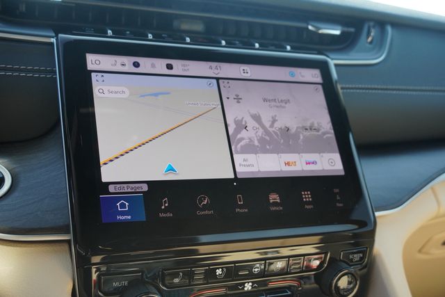 This Grand Cherokee L Limited comes well equipped with Black Appearance Package (Gloss Black Exterior Accents and Wheels: 20" x 8.5" Gloss Black Painted Aluminum), Luxury Tech Group II (2nd Row Manual Window Shades, Auto-Dimming Exterior Driver Mirror, Capri Leatherette w/Axis II Seats, Integrated Off-Road Camera, Intersection Collision Assist System, Memory Steering Column, ParkSense Front/Rear Park Assist w/Stop, Passive Entry - Front/Rear Doors, Liftgate, Power Tilt/Telescope Steering Column, Rain Sensitive Windshield Wipers, Rear Back Up Camera Washer, Rearview Autodim Digital Display Mirror, Surround View Camera System, Ventilated Front Seats, and Wireless Charging Pad), Quick Order Package 22E, 3.45 Rear Axle Ratio, 3rd row seats: split-bench, 4-Wheel Disc Brakes, 6 Speakers, ABS brakes, Active Noise Control System, Air Conditioning, Alloy wheels, AM/FM radio: SiriusXM with 360L, Anti-whiplash front head restraints, Audio memory, Auto High-beam Headlights, Automatic temperature control, Brake assist, Bumpers: body-color, Capri Leatherette Seats, Compass, Delay-off headlights, Driver door bin, Driver vanity mirror, Dual front impact airbags, Dual front side impact airbags, Dual-Pane Panoramic Sunroof, Electronic Stability Control, Emergency communication system, Four wheel independent suspension, Front anti-roll bar, Front Bucket Seats, Front Center Armrest w/Storage, Front dual zone A/C, Front fog lights, Front License Plate Bracket, Front reading lights, Fully automatic headlights, Garage door transmitter, Heated door mirrors, Heated front seats, Heated rear seats, Heated steering wheel, Illuminated entry, Interior Rear Facing Camera, Knee airbag, Low tire pressure warning, Manual Fold Seatbacks, Memory seat, Model Year Tracking, Navigation System, Normal Duty Suspension, Occupant sensing airbag, Outside temperature display, Overhead airbag, Overhead console, Panic alarm, ParkView Rear Back-Up Camera, Passenger door bin, Passenger vanity mirror, Power door mirrors, Power driver seat, Power Liftgate, Power passenger seat, Power steering, Power windows, Radio data system, Radio: Uconnect 5 Nav w/10.1" Display, Rear air conditioning, Rear anti-roll bar, Rear reading lights, Rear window defroster, Rear window wiper, Reclining 3rd row seat, Remote keyless entry, Security system, Speed control, Speed-Sensitive Wipers, Split folding rear seat, Spoiler, Steering wheel mounted audio controls, Tachometer, Telescoping steering wheel, Tilt steering wheel, Traction control, Trip computer, Turn signal indicator mirrors, Variably intermittent wipers, Voltmeter, and Wheels: 18" x 8.0" Polished/Painted Aluminum.