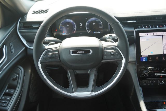 This Grand Cherokee L Limited comes well equipped with Black Appearance Package (Gloss Black Exterior Accents and Wheels: 20" x 8.5" Gloss Black Painted Aluminum), Luxury Tech Group II (2nd Row Manual Window Shades, Auto-Dimming Exterior Driver Mirror, Capri Leatherette w/Axis II Seats, Integrated Off-Road Camera, Intersection Collision Assist System, Memory Steering Column, ParkSense Front/Rear Park Assist w/Stop, Passive Entry - Front/Rear Doors, Liftgate, Power Tilt/Telescope Steering Column, Rain Sensitive Windshield Wipers, Rear Back Up Camera Washer, Rearview Autodim Digital Display Mirror, Surround View Camera System, Ventilated Front Seats, and Wireless Charging Pad), Quick Order Package 23E (DISC), Dual-Pane Panoramic Sunroof, Interior Rear Facing Camera, Memory seat, ParkView Rear Back-Up Camera, Power driver seat, Power Liftgate, 3.45 Rear Axle Ratio, 3rd row seats: split-bench, 4-Wheel Disc Brakes, 6 Speakers, ABS brakes, Active Noise Control System, Air Conditioning, Alloy wheels, AM/FM radio: SiriusXM with 360L, Anti-whiplash front head restraints, Audio memory, Auto High-beam Headlights, Automatic temperature control, Brake assist, Bumpers: body-color, Capri Leatherette Seats, Compass, Delay-off headlights, Driver door bin, Driver vanity mirror, Dual front impact airbags, Dual front side impact airbags, Electronic Stability Control, Emergency communication system, Four wheel independent suspension, Front anti-roll bar, Front Bucket Seats, Front Center Armrest w/Storage, Front dual zone A/C, Front fog lights, Front License Plate Bracket, Front reading lights, Fully automatic headlights, Garage door transmitter, Heated door mirrors, Heated front seats, Heated rear seats, Heated steering wheel, Illuminated entry, Knee airbag, Low tire pressure warning, Manual Fold Seatbacks, Model Year Tracking, Navigation System, Normal Duty Suspension, Occupant sensing airbag, Outside temperature display, Overhead airbag, Overhead console, Panic alarm, Passenger door bin, Passenger vanity mirror, Power door mirrors, Power passenger seat, Power steering, Power windows, Radio data system, Radio: Uconnect 5 Nav w/10.1" Display, Rear air conditioning, Rear anti-roll bar, Rear reading lights, Rear window defroster, Rear window wiper, Reclining 3rd row seat, Remote keyless entry, Security system, Speed control, Speed-Sensitive Wipers, Split folding rear seat, Spoiler, Steering wheel mounted audio controls, Tachometer, Telescoping steering wheel, Tilt steering wheel, Traction control, Trip computer, Turn signal indicator mirrors, Variably intermittent wipers, Voltmeter, and Wheels: 18" x 8.0" Polished/Painted Aluminum.
