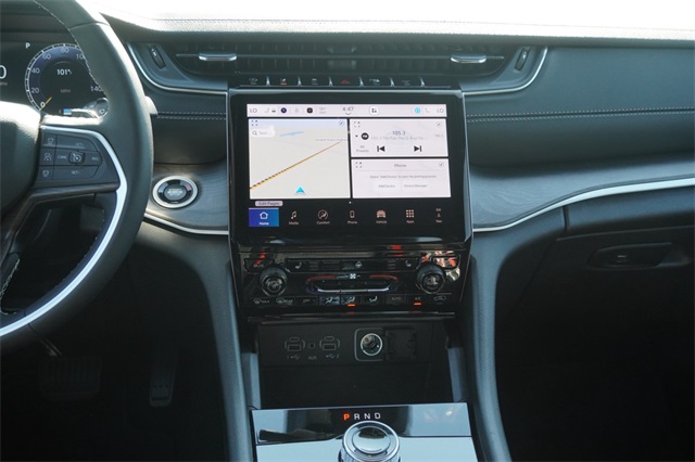 This Grand Cherokee L Limited comes well equipped with Quick Order Package 23E (DISC), 3.45 Rear Axle Ratio, 3rd row seats: split-bench, 4-Wheel Disc Brakes, 6 Speakers, ABS brakes, Active Noise Control System, Air Conditioning, Alloy wheels, AM/FM radio: SiriusXM with 360L, Anti-whiplash front head restraints, Audio memory, Auto High-beam Headlights, Automatic temperature control, Brake assist, Bumpers: body-color, Capri Leatherette Seats, Compass, Delay-off headlights, Driver door bin, Driver vanity mirror, Dual front impact airbags, Dual front side impact airbags, Dual-Pane Panoramic Sunroof, Electronic Stability Control, Emergency communication system, Four wheel independent suspension, Front anti-roll bar, Front Bucket Seats, Front Center Armrest w/Storage, Front dual zone A/C, Front fog lights, Front License Plate Bracket, Front reading lights, Fully automatic headlights, Garage door transmitter, Heated door mirrors, Heated front seats, Heated rear seats, Heated steering wheel, Illuminated entry, Interior Rear Facing Camera, Knee airbag, Low tire pressure warning, Manual Fold Seatbacks, Memory seat, Model Year Tracking, Navigation System, Normal Duty Suspension, Occupant sensing airbag, Outside temperature display, Overhead airbag, Overhead console, Panic alarm, ParkView Rear Back-Up Camera, Passenger door bin, Passenger vanity mirror, Power door mirrors, Power driver seat, Power Liftgate, Power passenger seat, Power steering, Power windows, Radio data system, Radio: Uconnect 5 Nav w/10.1" Display, Rear air conditioning, Rear anti-roll bar, Rear reading lights, Rear window defroster, Rear window wiper, Reclining 3rd row seat, Remote keyless entry, Security system, Speed control, Speed-Sensitive Wipers, Split folding rear seat, Spoiler, Steering wheel mounted audio controls, Tachometer, Telescoping steering wheel, Tilt steering wheel, Traction control, Trip computer, Turn signal indicator mirrors, Variably intermittent wipers, Voltmeter, and Wheels: 18" x 8.0" Polished/Painted Aluminum.
