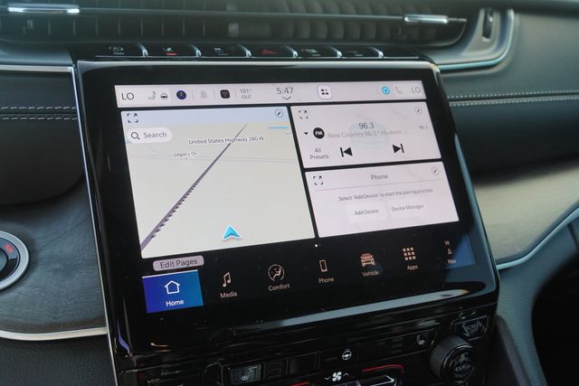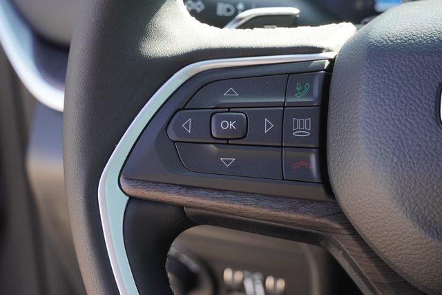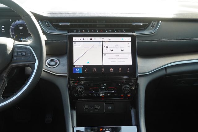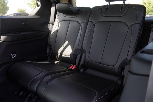 This Grand Cherokee L Limited comes well equipped with Black Appearance Package (Gloss Black Exterior Accents and Wheels: 20" x 8.5" Gloss Black Painted Aluminum), Quick Order Package 22E, 3.45 Rear Axle Ratio, 3rd row seats: split-bench, 4-Wheel Disc Brakes, 6 Speakers, ABS brakes, Active Noise Control System, Air Conditioning, Alloy wheels, AM/FM radio: SiriusXM with 360L, Anti-whiplash front head restraints, Audio memory, Auto High-beam Headlights, Automatic temperature control, Brake assist, Bumpers: body-color, Capri Leatherette Seats, Compass, Delay-off headlights, Driver door bin, Driver vanity mirror, Dual front impact airbags, Dual front side impact airbags, Dual-Pane Panoramic Sunroof, Electronic Stability Control, Emergency communication system, Four wheel independent suspension, Front anti-roll bar, Front Bucket Seats, Front Center Armrest w/Storage, Front dual zone A/C, Front fog lights, Front License Plate Bracket, Front reading lights, Fully automatic headlights, Garage door transmitter, Heated door mirrors, Heated front seats, Heated rear seats, Heated steering wheel, Illuminated entry, Interior Rear Facing Camera, Knee airbag, Low tire pressure warning, Manual Fold Seatbacks, Memory seat, Model Year Tracking, Navigation System, Normal Duty Suspension, Occupant sensing airbag, Outside temperature display, Overhead airbag, Overhead console, Panic alarm, ParkView Rear Back-Up Camera, Passenger door bin, Passenger vanity mirror, Power door mirrors, Power driver seat, Power Liftgate, Power passenger seat, Power steering, Power windows, Radio data system, Radio: Uconnect 5 Nav w/10.1" Display, Rear air conditioning, Rear anti-roll bar, Rear reading lights, Rear window defroster, Rear window wiper, Reclining 3rd row seat, Remote keyless entry, Security system, Speed control, Speed-Sensitive Wipers, Split folding rear seat, Spoiler, Steering wheel mounted audio controls, Tachometer, Telescoping steering wheel, Tilt steering wheel, Traction control, Trip computer, Turn signal indicator mirrors, Variably intermittent wipers, Voltmeter, and Wheels: 18" x 8.0" Polished/Painted Aluminum.