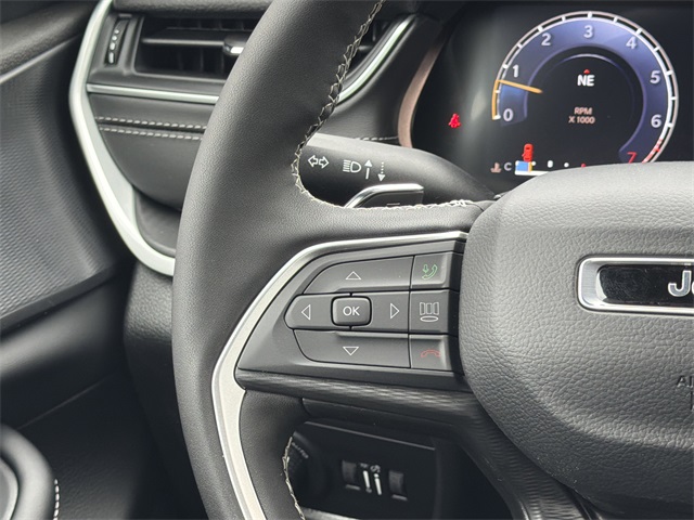 Diamond Black Crystal Pearlcoat 2025 Jeep Grand Cherokee L Altitude X 4D Sport Utility Altitude X 8-Speed Automatic 3.6L V6 24V VVT 4WD PRICE REDUCED TO SELL BY MONTH END, 115V Auxiliary Power Outlet, 3rd Row Charge-Only USB Ports, 3rd row seats: split-bench, 4-Wheel Disc Brakes, 6 Speakers, ABS brakes, Air Conditioning, Altitude X, AM/FM radio: SiriusXM, Anti-whiplash front head restraints, Automatic temperature control, Black Headliner, Brake assist, Bumpers: body-color, Capri Leatherette/Suede Seats, Cloth Seats, Compass, Delay-off headlights, Delete Laredo Badge, Driver door bin, Driver vanity mirror, Dual front impact airbags, Dual front side impact airbags, Electronic Stability Control, Emergency communication system, Four wheel independent suspension, Front anti-roll bar, Front Bucket Seats, Front Center Armrest w/Storage, Front dual zone A/C, Front reading lights, Fully automatic headlights, Gloss Black Exterior Accents, Heated door mirrors, Heated Front Seats, Heated Steering Wheel, Illuminated entry, Knee airbag, Low tire pressure warning, Manual Fold Seatbacks, Model Year Tracking, Normal Duty Suspension, Occupant sensing airbag, Outside temperature display, Overhead airbag, Overhead console, Panic alarm, ParkView Rear Back-Up Camera, Passenger door bin, Passenger vanity mirror, Power door mirrors, Power driver seat, Power Liftgate, Power steering, Power Sunroof, Power windows, Quick Order Package 23M Altitude X, Radio data system, Rain Sensitive Windshield Wipers, Rear air conditioning, Rear anti-roll bar, Rear reading lights, Rear window defroster, Rear window wiper, Reclining 3rd row seat, Remote keyless entry, Remote Start System, Security system, Selectable Tire Fill Alert, Speed control, Speed-Sensitive Wipers, Split folding rear seat, Spoiler, Steering wheel mounted audio controls, Tachometer, Telescoping steering wheel, Tilt steering wheel, Traction control, Trip computer, Variably intermittent wipers, Voltmeter, Wheels: 18" x 8.0" Fully Painted Aluminum 1, Wireless Charging Pad.