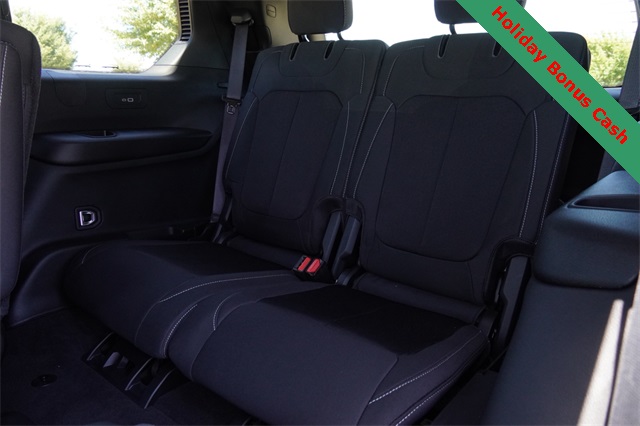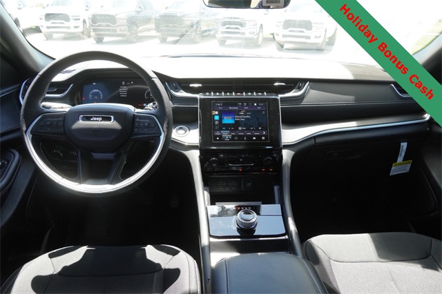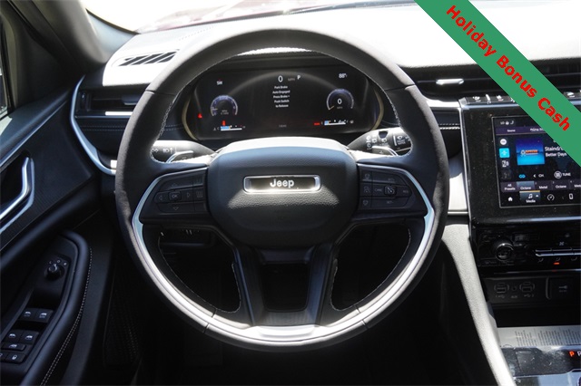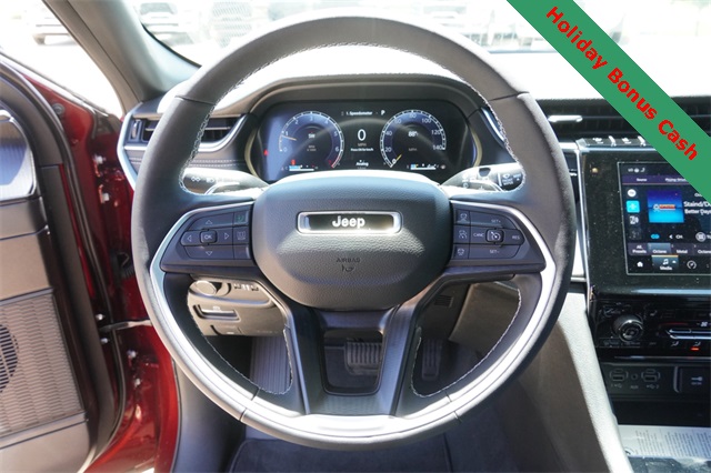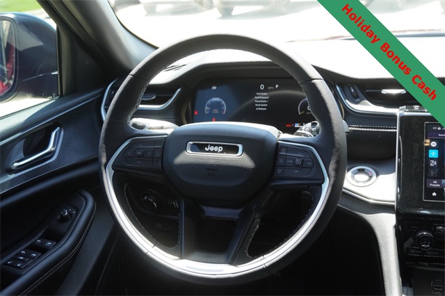 This Grand Cherokee L Laredo comes well equipped with Luxury Tech Group I (Heated Front Seats, Heated Steering Wheel, Power Liftgate, Rain Sensitive Windshield Wipers, Remote Start System, Wireless Charging Pad, 115V Auxiliary Power Outlet, 3rd Row Charge-Only USB Ports, and Selectable Tire Fill Alert), Quick Order Package 23D Laredo X (Laredo X and Power Sunroof), 3rd row seats: split-bench, ParkView Rear Back-Up Camera, Wheels: 18" x 8.0" Fully Painted Aluminum, 3.45 Rear Axle Ratio, 4-Wheel Disc Brakes, 6 Speakers, ABS brakes, Air Conditioning, Alloy wheels, AM/FM radio: SiriusXM, Anti-whiplash front head restraints, Automatic temperature control, Brake assist, Bumpers: body-color, Cloth Seats, Compass, Delay-off headlights, Driver door bin, Driver vanity mirror, Dual front impact airbags, Dual front side impact airbags, Electronic Stability Control, Emergency communication system, Four wheel independent suspension, Front anti-roll bar, Front Bucket Seats, Front Center Armrest w/Storage, Front dual zone A/C, Front License Plate Bracket, Front reading lights, Fully automatic headlights, Heated door mirrors, Illuminated entry, Knee airbag, Low tire pressure warning, Manual Fold Seatbacks, Model Year Tracking, Normal Duty Suspension, Occupant sensing airbag, Outside temperature display, Overhead airbag, Overhead console, Panic alarm, Passenger door bin, Passenger vanity mirror, Power door mirrors, Power driver seat, Power steering, Power windows, Radio data system, Rear air conditioning, Rear anti-roll bar, Rear reading lights, Rear window defroster, Rear window wiper, Reclining 3rd row seat, Remote keyless entry, Security system, Speed control, Speed-Sensitive Wipers, Split folding rear seat, Spoiler, Steering wheel mounted audio controls, Tachometer, Telescoping steering wheel, Tilt steering wheel, Traction control, Trip computer, Variably intermittent wipers, and Voltmeter.