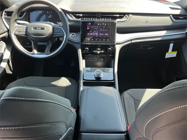 This Grand Cherokee L Laredo comes well equipped with Quick Order Package 23D Laredo X (Laredo X and Power Sunroof), 3rd row seats: split-bench, Wheels: 18" x 8.0" Fully Painted Aluminum, 3.45 Rear Axle Ratio, 4-Wheel Disc Brakes, 6 Speakers, ABS brakes, Air Conditioning, Alloy wheels, AM/FM radio: SiriusXM, Anti-whiplash front head restraints, Automatic temperature control, Brake assist, Bumpers: body-color, Cloth Seats, Compass, Delay-off headlights, Driver door bin, Driver vanity mirror, Dual front impact airbags, Dual front side impact airbags, Electronic Stability Control, Emergency communication system, Four wheel independent suspension, Front anti-roll bar, Front Bucket Seats, Front Center Armrest w/Storage, Front dual zone A/C, Front License Plate Bracket, Front reading lights, Fully automatic headlights, Heated door mirrors, Illuminated entry, Knee airbag, Low tire pressure warning, Manual Fold Seatbacks, Model Year Tracking, Normal Duty Suspension, Occupant sensing airbag, Outside temperature display, Overhead airbag, Overhead console, Panic alarm, ParkView Rear Back-Up Camera, Passenger door bin, Passenger vanity mirror, Power door mirrors, Power driver seat, Power steering, Power windows, Radio data system, Rear air conditioning, Rear anti-roll bar, Rear reading lights, Rear window defroster, Rear window wiper, Reclining 3rd row seat, Remote keyless entry, Security system, Speed control, Speed-Sensitive Wipers, Split folding rear seat, Spoiler, Steering wheel mounted audio controls, Tachometer, Telescoping steering wheel, Tilt steering wheel, Traction control, Trip computer, Variably intermittent wipers, and Voltmeter.