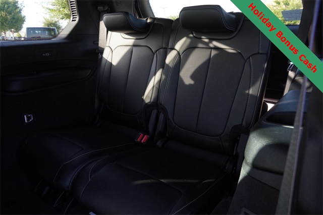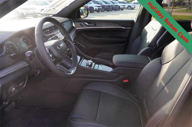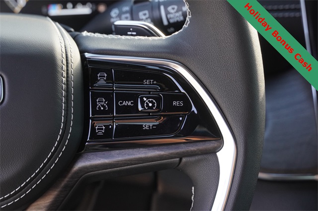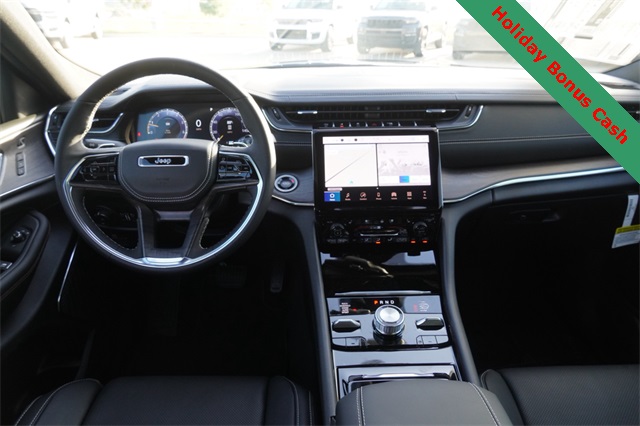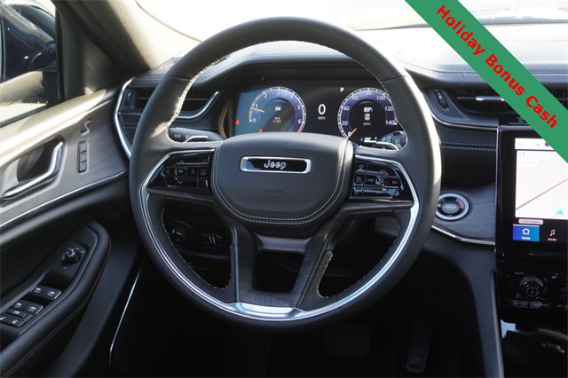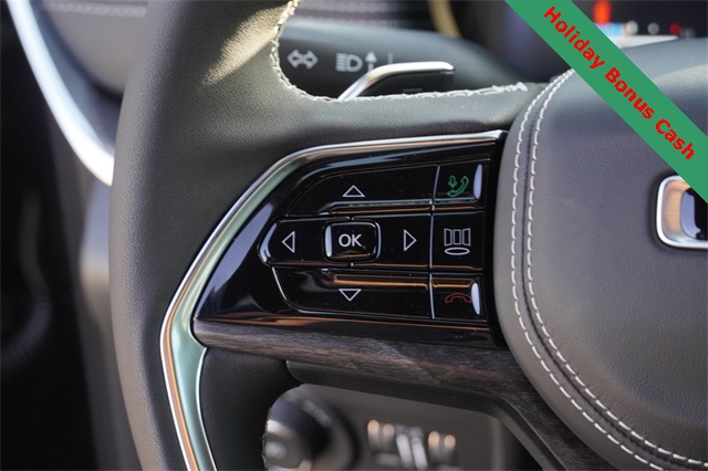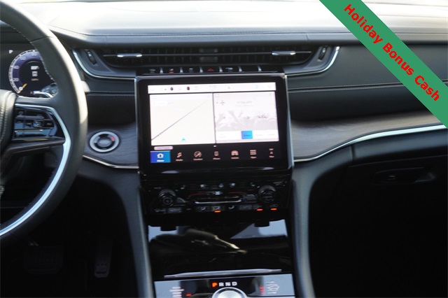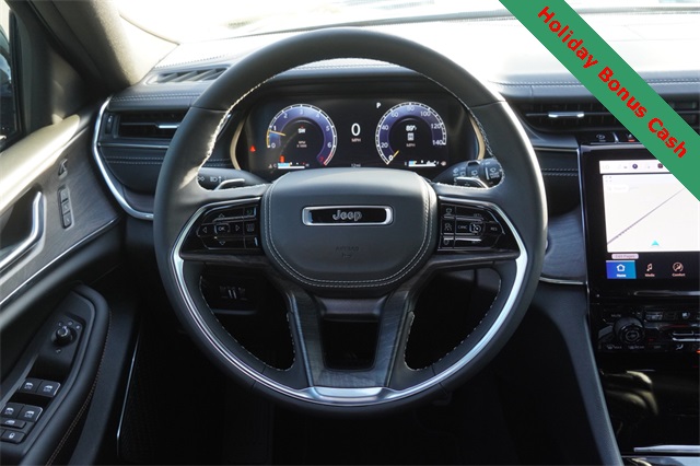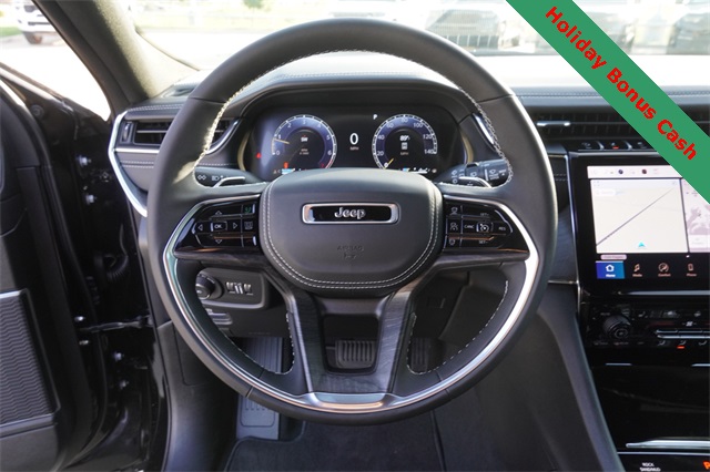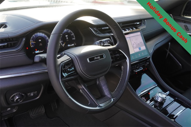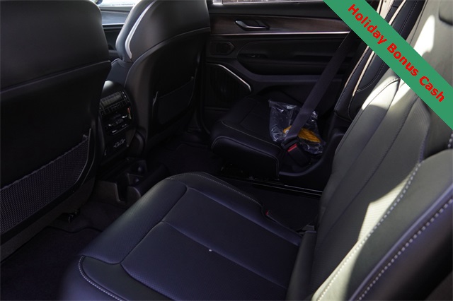 This Grand Cherokee L Overland comes well equipped with Luxury Tech Group IV (2nd Row Manual Window Shades, Driver Power Seat Back Massage, Front Passenger Power Seat Back Massage, Passenger Seat Memory, Power Adjust 12-Way Driver Seat, Power Adjust 12-Way Front Passenger Seat, Rearview Autodim Digital Display Mirror, Wireless Charging Pad, and Nappa Leather Seats), Quick Order Package 23N, Trailer Tow Package (Class IV Receiver Hitch), Heated steering wheel, Navigation System, Power Liftgate, Power moonroof, 10 Speakers, 3.45 Rear Axle Ratio, 3rd row seats: split-bench, 4-Wheel Disc Brakes, ABS brakes, Adaptive suspension, Air Conditioning, Alloy wheels, AM/FM radio: SiriusXM with 360L, Anti-whiplash front head restraints, Audio memory, Auto High-beam Headlights, Auto-dimming door mirrors, Auto-dimming Rear-View mirror, Auto-leveling suspension, Automatic temperature control, Brake assist, Bumpers: body-color, Compass, Delay-off headlights, Driver door bin, Driver vanity mirror, Dual front impact airbags, Dual front side impact airbags, Electronic Stability Control, Emergency communication system, Four wheel independent suspension, Front anti-roll bar, Front Bucket Seats, Front Center Armrest w/Storage, Front dual zone A/C, Front fog lights, Front License Plate Bracket, Front reading lights, Fully automatic headlights, Garage door transmitter, Heated door mirrors, Heated front seats, Heated rear seats, Illuminated entry, Knee airbag, Low tire pressure warning, Memory seat, Model Year Tracking, Normal Duty Suspension, Occupant sensing airbag, Outside temperature display, Overhead airbag, Overhead console, Panic alarm, Passenger door bin, Passenger vanity mirror, Power door mirrors, Power driver seat, Power Fold Seatbacks, Power passenger seat, Power steering, Power windows, Radio data system, Rain sensing wipers, Rear air conditioning, Rear anti-roll bar, Rear reading lights, Rear window defroster, Rear window wiper, Reclining 3rd row seat, Remote keyless entry, Security system, Speed control, Speed-Sensitive Wipers, Split folding rear seat, Spoiler, Steering wheel memory, Steering wheel mounted audio controls, Tachometer, Telescoping steering wheel, Tilt steering wheel, Traction control, Trip computer, Turn signal indicator mirrors, Variably intermittent wipers, Ventilated front seats, Voltmeter, and Wheels: 20" x 8.5" Machined Face Aluminum.