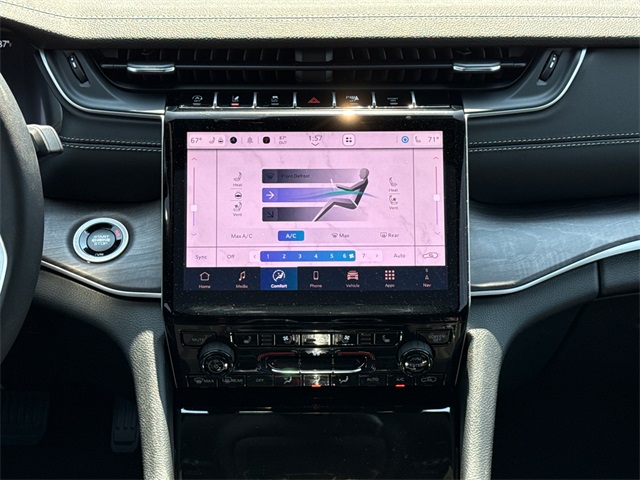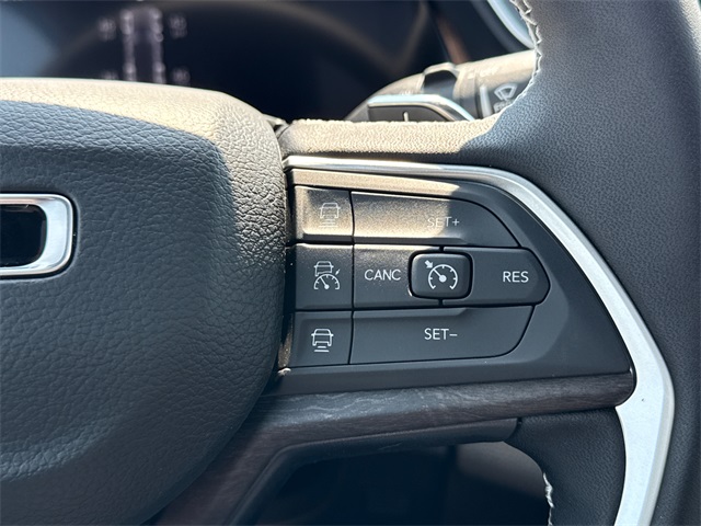 This Grand Cherokee Limited comes well equipped with Black Appearance Package (Gloss Black Exterior Accents and Wheels: 20" x 8.5" Gloss Black Painted Aluminum), Luxury Tech Group II (2nd-Row Manual Window Shades, Auto-Dimming Exterior Driver Mirror, Capri Leatherette w/Axis II Seats, Front/Rear Doors & Liftgate w/Passive Entry, Integrated Off-Road Camera, Intersection Collision Assist System, Memory Steering Column, ParkSense Front/Rear Park Assist w/Stop, Power Tilt/Telescope Steering Column, Rain Sensitive Windshield Wipers, Rear Back-Up Camera Washer, Rearview Autodim Digital Display Mirror, Surround View Camera System, Ventilated Front Seats, and Wireless Charging Pad), Quick Order Package 23E (DISC), 4-Wheel Disc Brakes, 6 Speakers, ABS brakes, Active Noise Control System, Air Conditioning, Alloy wheels, AM/FM radio: SiriusXM with 360L, Anti-whiplash front head restraints, Audio memory, Auto High-beam Headlights, Automatic temperature control, Brake assist, Bumpers: body-color, Capri Leatherette Seats, Compass, Delay-off headlights, Driver door bin, Driver vanity mirror, Dual front impact airbags, Dual front side impact airbags, Dual-Pane Panoramic Sunroof, Electronic Stability Control, Emergency communication system, Four wheel independent suspension, Front anti-roll bar, Front Bucket Seats, Front Center Armrest w/Storage, Front dual zone A/C, Front fog lights, Front License Plate Bracket, Front reading lights, Fully automatic headlights, Garage door transmitter, Heated door mirrors, Heated front seats, Heated rear seats, Heated steering wheel, Illuminated entry, Knee airbag, Low tire pressure warning, Memory seat, Model Year Tracking, Navigation System, Normal Duty Suspension, Occupant sensing airbag, Outside temperature display, Overhead airbag, Overhead console, Panic alarm, ParkView Rear Back-Up Camera, Passenger door bin, Passenger vanity mirror, Power door mirrors, Power driver seat, Power Liftgate, Power passenger seat, Power steering, Power windows, Radio data system, Radio: Uconnect 5 Nav w/10.1" Display, Rear anti-roll bar, Rear reading lights, Rear window defroster, Rear window wiper, Remote keyless entry, Security system, Speed control, Speed-Sensitive Wipers, Split folding rear seat, Spoiler, Steering wheel mounted audio controls, Tachometer, Telescoping steering wheel, Tilt steering wheel, Traction control, Trip computer, Turn signal indicator mirrors, Variably intermittent wipers, Voltmeter, and Wheels: 18" x 8" Polished/Painted Aluminum.