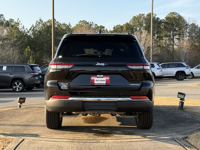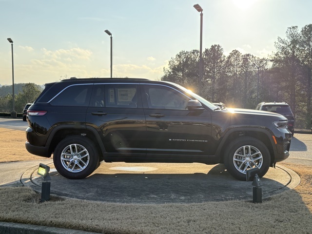 Diamond Black Crystal Pearlcoat 2025 Jeep Grand Cherokee Laredo 4D Sport Utility Laredo 8-Speed Automatic 3.6L V6 24V VVT 4WD Backup Camera, SiriusXM, APPLE CAR PLAY ANDROID AUTO, 3.6L V6 24V VVT Pentastar Engine with Stop / Start, 115V Auxiliary Power Outlet, 4-Wheel Disc Brakes, 6 Speakers, ABS brakes, Air Conditioning, AM/FM radio: SiriusXM, Anti-whiplash front head restraints, Automatic temperature control, Brake assist, Bumpers: body-color, Cloth Seats, Compass, Delay-off headlights, Driver door bin, Driver vanity mirror, Dual front impact airbags, Dual front side impact airbags, Electronic Stability Control, Emergency communication system, Four wheel independent suspension, Front anti-roll bar, Front Bucket Seats, Front Center Armrest w/Storage, Front dual zone A/C, Front reading lights, Fully automatic headlights, Heated door mirrors, Heated Front Seats, Heated Steering Wheel, Illuminated entry, Knee airbag, Low tire pressure warning, Luxury Tech Group I, Model Year Tracking, Normal Duty Suspension, Occupant sensing airbag, Outside temperature display, Overhead airbag, Overhead console, Panic alarm, ParkView Rear Back-Up Camera, Passenger door bin, Passenger vanity mirror, Power door mirrors, Power driver seat, Power Liftgate, Power steering, Power windows, Radio data system, Rain Sensitive Windshield Wipers, Rear anti-roll bar, Rear reading lights, Rear window defroster, Rear window wiper, Remote keyless entry, Remote Start System, Secondary Active Grille Shutters, Security system, Selectable Tire Fill Alert, Speed control, Speed-Sensitive Wipers, Split folding rear seat, Spoiler, Steering wheel mounted audio controls, Tachometer, Telescoping steering wheel, Tilt steering wheel, Traction control, Trip computer, Variably intermittent wipers, Voltmeter, Wireless Charging Pad.