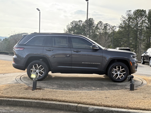 Baltic Gray Metallic Clearcoat 2025 Jeep Grand Cherokee Limited 4D Sport Utility Limited 8-Speed Automatic 3.6L V6 24V VVT 4WD PRICE REDUCED TO SELL BY MONTH END, 4-Wheel Disc Brakes, 6 Speakers, ABS brakes, Active Noise Control System, Air Conditioning, AM/FM radio: SiriusXM with 360L, Anti-whiplash front head restraints, Audio memory, Auto High-beam Headlights, Automatic temperature control, Brake assist, Bumpers: body-color, Capri Leatherette Seats, Compass, Delay-off headlights, Driver door bin, Driver vanity mirror, Dual front impact airbags, Dual front side impact airbags, Dual-Pane Panoramic Sunroof, Electronic Stability Control, Emergency communication system, Four wheel independent suspension, Front anti-roll bar, Front Bucket Seats, Front Center Armrest w/Storage, Front dual zone A/C, Front fog lights, Front reading lights, Fully automatic headlights, Garage door transmitter, Heated door mirrors, Heated front seats, Heated rear seats, Heated steering wheel, Illuminated entry, Knee airbag, Low tire pressure warning, Memory seat, Model Year Tracking, Navigation System, Normal Duty Suspension, Occupant sensing airbag, Outside temperature display, Overhead airbag, Overhead console, Panic alarm, ParkView Rear Back-Up Camera, Passenger door bin, Passenger vanity mirror, Power door mirrors, Power driver seat, Power Liftgate, Power passenger seat, Power steering, Power windows, Radio data system, Rear anti-roll bar, Rear reading lights, Rear window defroster, Rear window wiper, Remote keyless entry, Security system, Speed control, Speed-Sensitive Wipers, Split folding rear seat, Spoiler, Steering wheel mounted audio controls, Tachometer, Telescoping steering wheel, Tilt steering wheel, Traction control, Trip computer, Turn signal indicator mirrors, Variably intermittent wipers, Voltmeter.