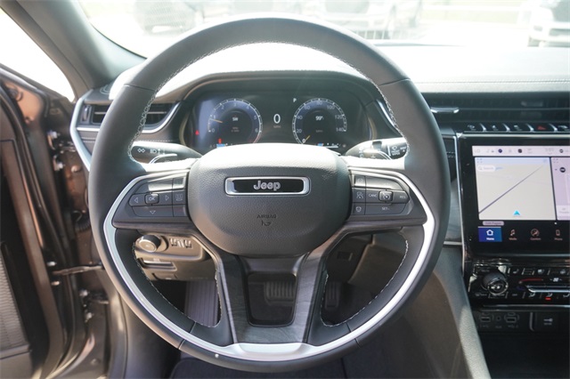 This Grand Cherokee Limited comes well equipped with Black Appearance Package (Gloss Black Exterior Accents and Wheels: 20" x 8.5" Gloss Black Painted Aluminum), Luxury Tech Group II (2nd-Row Manual Window Shades, Auto-Dimming Exterior Driver Mirror, Capri Leatherette w/Axis II Seats, Front/Rear Doors & Liftgate w/Passive Entry, Integrated Off-Road Camera, Intersection Collision Assist System, Memory Steering Column, ParkSense Front/Rear Park Assist w/Stop, Power Tilt/Telescope Steering Column, Rain Sensitive Windshield Wipers, Rear Back-Up Camera Washer, Rearview Autodim Digital Display Mirror, Surround View Camera System, Ventilated Front Seats, and Wireless Charging Pad), Quick Order Package 22E, 4-Wheel Disc Brakes, 6 Speakers, ABS brakes, Active Noise Control System, Air Conditioning, Alloy wheels, AM/FM radio: SiriusXM with 360L, Anti-whiplash front head restraints, Audio memory, Auto High-beam Headlights, Automatic temperature control, Brake assist, Bumpers: body-color, Capri Leatherette Seats, Compass, Delay-off headlights, Driver door bin, Driver vanity mirror, Dual front impact airbags, Dual front side impact airbags, Dual-Pane Panoramic Sunroof, Electronic Stability Control, Emergency communication system, Four wheel independent suspension, Front anti-roll bar, Front Bucket Seats, Front Center Armrest w/Storage, Front dual zone A/C, Front fog lights, Front License Plate Bracket, Front reading lights, Fully automatic headlights, Garage door transmitter, Heated door mirrors, Heated front seats, Heated rear seats, Heated steering wheel, Illuminated entry, Knee airbag, Low tire pressure warning, Memory seat, Model Year Tracking, Navigation System, Normal Duty Suspension, Occupant sensing airbag, Outside temperature display, Overhead airbag, Overhead console, Panic alarm, ParkView Rear Back-Up Camera, Passenger door bin, Passenger vanity mirror, Power door mirrors, Power driver seat, Power Liftgate, Power passenger seat, Power steering, Power windows, Radio data system, Radio: Uconnect 5 Nav w/10.1" Display, Rear anti-roll bar, Rear reading lights, Rear window defroster, Rear window wiper, Remote keyless entry, Security system, Speed control, Speed-Sensitive Wipers, Split folding rear seat, Spoiler, Steering wheel mounted audio controls, Tachometer, Telescoping steering wheel, Tilt steering wheel, Traction control, Trip computer, Turn signal indicator mirrors, Variably intermittent wipers, Voltmeter, and Wheels: 18" x 8" Polished/Painted Aluminum.
