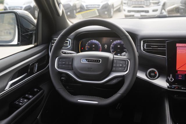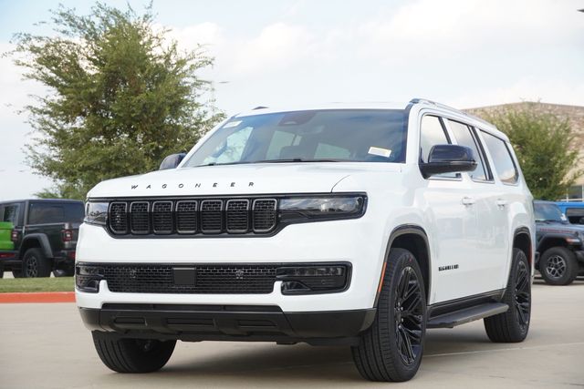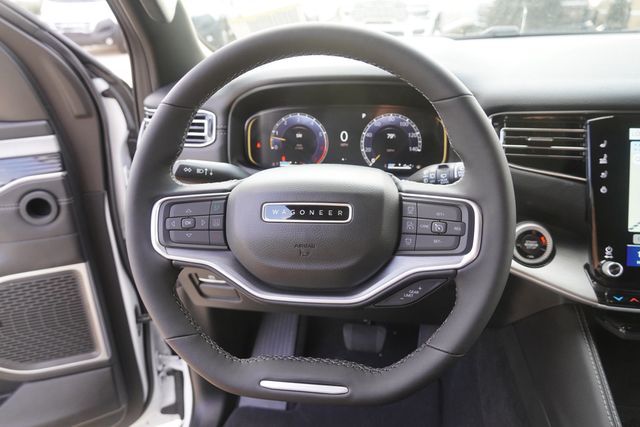 This Wagoneer L Series II comes well equipped with Carbide Appearance Package, Premium Group I (118 MPH Maximum Speed Calibration, 3 Panel Sunroof, Adjustable Roof Rail Crossbars, and Reversible Carpet/Vinyl Cargo Mat), Quick Order Package 25F Carbide (Piano Black Exterior Accents and Wheels: 20" x 9.0" Aluminum Painted Gloss Black), Rear Seat Video Group 1 (Amazon Fire TV Built-In, Seatback Video Screens, and Video USB Port), Navigation System, 10 Speakers, 3.55 Rear Axle Ratio, 3rd row seats: bench, 4-Wheel Disc Brakes, ABS brakes, Air Conditioning, Alloy wheels, AM/FM radio: SiriusXM with 360L, Anti-whiplash front head restraints, Apple CarPlay/Android Auto, Audio memory, Auto Adjust In Reverse Exterior Mirrors, Auto-dimming door mirrors, Auto-Dimming Exterior Driver Mirror, Auto-dimming Rear-View mirror, Auto-leveling suspension, Automatic temperature control, Brake assist, Bumpers: body-color, Compass, Delay-off headlights, Driver door bin, Driver vanity mirror, Driver's Seat Mounted Armrest, Dual front impact airbags, Dual front side impact airbags, Electronic Stability Control, Emergency communication system: Jeep Connect, Exterior Mirrors Approach Lamps, Exterior Mirrors w/Memory, Exterior Mirrors w/Supplemental Signals, Four wheel independent suspension, Front anti-roll bar, Front Bucket Seats, Front Center Armrest w/Storage, Front dual zone A/C, Front fog lights, Front License Plate Bracket, Front reading lights, Fully automatic headlights, Garage door transmitter, Genuine wood console insert, Genuine wood dashboard insert, Genuine wood door panel insert, Heated door mirrors, Heated Exterior Mirrors, Heated front seats, Heated rear seats, Heated steering wheel, Illuminated entry, Knee airbag, Leather Trimmed Bucket Seats, Low tire pressure warning, Memory seat, Normal Duty Suspension, Occupant sensing airbag, Outside temperature display, Overhead airbag, Overhead console, Panic alarm, ParkView Rear Back-Up Camera, Passenger door bin, Passenger seat mounted armrest, Passenger vanity mirror, Power adjustable front head restraints, Power door mirrors, Power driver seat, Power Liftgate, Power passenger seat, Power steering, Power windows, Radio data system, Radio: Uconnect 5 Nav w/10.1" Display, Rain sensing wipers, Rear air conditioning, Rear anti-roll bar, Rear reading lights, Rear seat center armrest, Rear window defroster, Rear window wiper, Reclining 3rd row seat, Remote keyless entry, Security system, Speed control, Speed-sensing steering, Speed-Sensitive Wipers, Split folding rear seat, Steering wheel memory, Steering wheel mounted audio controls, Tachometer, Telescoping steering wheel, Tilt steering wheel, Traction control, Trip computer, Turn signal indicator mirrors, Variably intermittent wipers, Ventilated front seats, Voltmeter, Wheels: 20" x 9.0" Premium 2 Aluminum, and Wheels: 22" x 9.0" Painted Gloss Black.