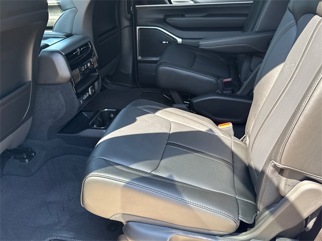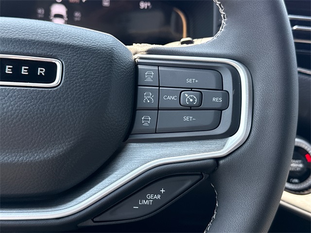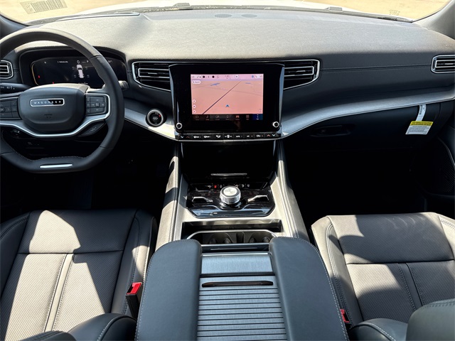 This Wagoneer Series II comes well equipped with Carbide Appearance Package, Convenience Group I (DISC) (2nd Row Manual Window Shades, Auto Adjust In Reverse Exterior Mirrors, Auto High Beam Headlamp Control, Auto Power Folding Exterior Mirrors, Auto Power-Folding Mirrors, Auto-Dimming Exterior Driver Mirror, Drowsy Driver Detection, Exterior Mirrors Approach Lamps, Exterior Mirrors w/Memory, Exterior Mirrors w/Supplemental Signals, Heads-Up Display, Heated Exterior Mirrors, Intersection Collision Assist System, P&P Park & Unpark Assist w/Stop System, Quadra-Lift Air Suspension, Semi Active Damping, Side Distance Warning, Surround View Camera System, and Traffic Sign Recognition), Quick Order Package 25F Carbide (Black Exterior Accents and Wheels: 20" x 9" Gloss Black Painted Aluminum), 10 Speakers, 118 MPH Maximum Speed Calibration, 3.55 Rear Axle Ratio, 3rd row seats: bench, 4-Wheel Disc Brakes, ABS brakes, Air Conditioning, Alloy wheels, AM/FM radio: SiriusXM with 360L, Anti-whiplash front head restraints, Apple CarPlay/Android Auto, Audio memory, Auto-dimming door mirrors, Auto-dimming Rear-View mirror, Auto-leveling suspension, Automatic temperature control, Brake assist, Bumpers: body-color, Compass, Delay-off headlights, Driver door bin, Driver vanity mirror, Driver's Seat Mounted Armrest, Dual front impact airbags, Dual front side impact airbags, Electronic Stability Control, Emergency communication system: Jeep Connect, Four wheel independent suspension, Front anti-roll bar, Front Bucket Seats, Front Center Armrest w/Storage, Front dual zone A/C, Front fog lights, Front License Plate Bracket, Front reading lights, Fully automatic headlights, Garage door transmitter, Genuine wood console insert, Genuine wood dashboard insert, Genuine wood door panel insert, Heated door mirrors, Heated front seats, Heated rear seats, Heated steering wheel, Illuminated entry, Knee airbag, Leather Trimmed Bucket Seats, Low tire pressure warning, Memory seat, Navigation System, Normal Duty Suspension, Occupant sensing airbag, Outside temperature display, Overhead airbag, Overhead console, Panic alarm, ParkView Rear Back-Up Camera, Passenger door bin, Passenger seat mounted armrest, Passenger vanity mirror, Power adjustable front head restraints, Power door mirrors, Power driver seat, Power Liftgate, Power passenger seat, Power steering, Power windows, Radio data system, Radio: Uconnect 5 Nav w/10.1" Display, Rain sensing wipers, Rear air conditioning, Rear anti-roll bar, Rear dual zone A/C, Rear reading lights, Rear seat center armrest, Rear window defroster, Rear window wiper, Reclining 3rd row seat, Remote keyless entry, Security system, Speed control, Speed-sensing steering, Speed-Sensitive Wipers, Split folding rear seat, Steering wheel memory, Steering wheel mounted audio controls, Tachometer, Telescoping steering wheel, Tilt steering wheel, Traction control, Trip computer, Turn signal indicator mirrors, Variably intermittent wipers, Ventilated front seats, Voltmeter, and Wheels: 20" x 9.0" Premium 2 Aluminum.