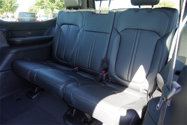 This Wagoneer Series II comes well equipped with Carbide Appearance Package, Premium Group I (3 Panel Sunroof, Adjustable Roof Rail Crossbars, Cargo Cover, and Reversible Carpet/Vinyl Cargo Mat), Quick Order Package 25F Carbide (Black Exterior Accents and Wheels: 20" x 9" Gloss Black Painted Aluminum), 10 Speakers, 118 MPH Maximum Speed Calibration, 3.55 Rear Axle Ratio, 3rd row seats: bench, 4-Wheel Disc Brakes, ABS brakes, Air Conditioning, Alloy wheels, AM/FM radio: SiriusXM with 360L, Anti-whiplash front head restraints, Apple CarPlay/Android Auto, Audio memory, Auto Adjust In Reverse Exterior Mirrors, Auto-dimming door mirrors, Auto-Dimming Exterior Driver Mirror, Auto-dimming Rear-View mirror, Auto-leveling suspension, Automatic temperature control, Brake assist, Bumpers: body-color, Compass, Delay-off headlights, Driver door bin, Driver vanity mirror, Driver's Seat Mounted Armrest, Dual front impact airbags, Dual front side impact airbags, Electronic Stability Control, Emergency communication system: Jeep Connect, Exterior Mirrors Approach Lamps, Exterior Mirrors w/Memory, Exterior Mirrors w/Supplemental Signals, Four wheel independent suspension, Front anti-roll bar, Front Bucket Seats, Front Center Armrest w/Storage, Front dual zone A/C, Front fog lights, Front License Plate Bracket, Front reading lights, Fully automatic headlights, Garage door transmitter, Genuine wood console insert, Genuine wood dashboard insert, Genuine wood door panel insert, Heated door mirrors, Heated Exterior Mirrors, Heated front seats, Heated rear seats, Heated steering wheel, Illuminated entry, Knee airbag, Leather Trimmed Bucket Seats, Low tire pressure warning, Memory seat, Navigation System, Normal Duty Suspension, Occupant sensing airbag, Outside temperature display, Overhead airbag, Overhead console, Panic alarm, ParkView Rear Back-Up Camera, Passenger door bin, Passenger seat mounted armrest, Passenger vanity mirror, Power adjustable front head restraints, Power door mirrors, Power driver seat, Power Liftgate, Power passenger seat, Power steering, Power windows, Radio data system, Radio: Uconnect 5 Nav w/10.1" Display, Rain sensing wipers, Rear air conditioning, Rear anti-roll bar, Rear dual zone A/C, Rear reading lights, Rear seat center armrest, Rear window defroster, Rear window wiper, Reclining 3rd row seat, Remote keyless entry, Security system, Speed control, Speed-sensing steering, Speed-Sensitive Wipers, Split folding rear seat, Steering wheel memory, Steering wheel mounted audio controls, Tachometer, Telescoping steering wheel, Tilt steering wheel, Traction control, Trip computer, Turn signal indicator mirrors, Variably intermittent wipers, Ventilated front seats, Voltmeter, Wheels: 20" x 9.0" Premium 2 Aluminum, and Wheels: 22" x 9.0" Painted Gloss Black.