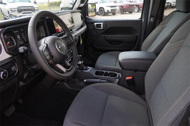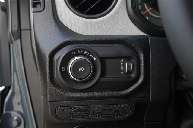 This Wrangler Sport S comes well equipped with Convenience Group (Cluster 7.0" TFT Color Display, Emergency/Assistance Call, Heated Front Seats, Heated Steering Wheel, Remote Start System, Universal Garage Door Opener, 2-Door Passive Entry, Front Door Locks, Air Conditioning w/Auto Temperature Control, and Air Filtering), Quick Order Package 22S Sport S (Advanced Brake Assist, Automatic Headlamps, Corning Gorilla Glass, Deep Tint Sunscreen Windows, Enhanced Adaptive Cruise Control, Power Heated Mirrors, Premium Wrapped Steering Wheel, Security Alarm, Sun Visors w/Illuminated Vanity Mirrors, and Wheels: 17" x 7.5" Gray), 3.45 Overall Top Gear Ratio, 110 MPH Vehicle Max Speed Calibration, 4-Wheel Disc Brakes, 8 Speakers, ABS brakes, Air Conditioning, AM/FM radio: SiriusXM, Apple CarPlay/Android Auto, Black 3-Piece Hard Top, Brake assist, Cloth Low-Back Bucket Seats, Compass, Delay-off headlights, Driver door bin, Driver vanity mirror, Dual front impact airbags, Dual front side impact airbags, Electronic Stability Control, Freedom Panel Storage Bag, Front anti-roll bar, Front Bucket Seats, Front Center Armrest w/Storage, Front fog lights, Front reading lights, Illuminated entry, Integrated roll-over protection, Low tire pressure warning, Normal Duty Suspension, Occupant sensing airbag, Outside temperature display, Overhead airbag, Panic alarm, ParkView Rear Back-Up Camera, Passenger door bin, Passenger vanity mirror, Power steering, Power windows, Radio data system, Radio: Uconnect 5 w/12.3" Display, Rear anti-roll bar, Rear reading lights, Rear Window Defroster, Rear Window Wiper/Washer, Remote keyless entry, Speed control, Steering wheel mounted audio controls, Stop-Start Dual Battery System, Tachometer, Telescoping steering wheel, Tilt steering wheel, Traction control, Trip computer, Variably intermittent wipers, and Wheels: 17" x 7.5" Black Steel Styled.