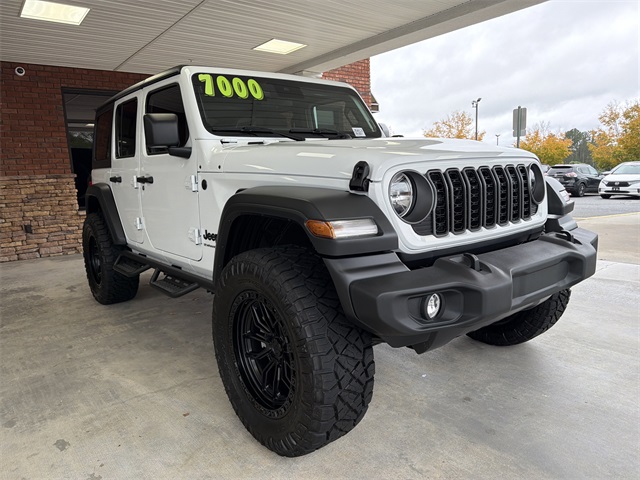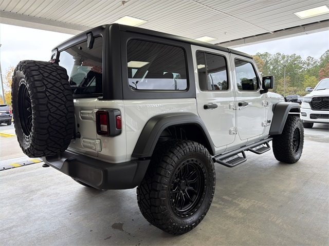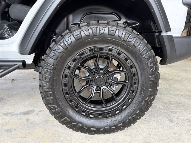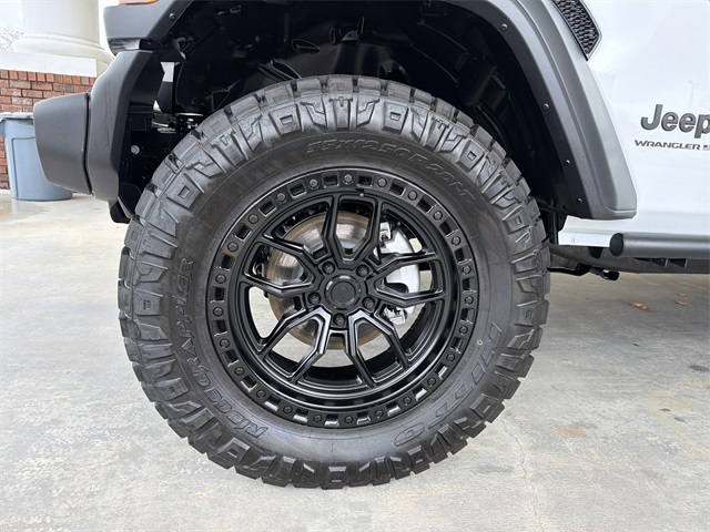 Bright White Clearcoat 2025 Jeep Wrangler Sport S 4D Sport Utility Sport S 8-Speed Automatic 3.6L V6 24V VVT 4WD ROUGH COUNTRY SPARE TIRE KIT, NERF STEPS, AREA HUSTLE 20 X 10 BLACK WHEELS, JLU LIFT KIT, 110 MPH Vehicle Max Speed Calibration, 3.45 Overall Top Gear Ratio, 4-Wheel Disc Brakes, 8 Speakers, ABS brakes, Advanced Brake Assist, Air Conditioning, AM/FM radio: SiriusXM, Apple CarPlay/Android Auto, Automatic Headlamps, Aux Battery, Black 3-Piece Hard Top, Brake assist, Cloth Low-Back Bucket Seats, Compass, Corning Gorilla Glass, Deep Tint Sunscreen Windows, Delay-off headlights, Driver door bin, Driver vanity mirror, Dual front impact airbags, Dual front side impact airbags, Electronic Stability Control, Enhanced Adaptive Cruise Control, Freedom Panel Storage Bag, Front anti-roll bar, Front Bucket Seats, Front Center Armrest w/Storage, Front fog lights, Front reading lights, Full Speed Forward Collision Warning Plus, Illuminated entry, Integrated roll-over protection, Low tire pressure warning, Non-Lock Fuel Cap w/o Discriminator, Normal Duty Suspension, Occupant sensing airbag, Outside temperature display, Overhead airbag, Panic alarm, ParkView Rear Back-Up Camera, Passenger door bin, Passenger vanity mirror, Power Heated Mirrors, Power steering, Power windows, Premium Wrapped Steering Wheel, Quick Order Package 24S Sport S, Radio data system, Radio: Uconnect 5 w/12.3" Display, Rear anti-roll bar, Rear reading lights, Rear Window Defroster, Rear Window Wiper/Washer, Remote keyless entry, Security Alarm, Speed control, Split folding rear seat, Steering wheel mounted audio controls, Stop-Start Dual Battery System, Sun Visors w/Illuminated Vanity Mirrors, Tachometer, Telescoping steering wheel, Tilt steering wheel, Traction control, Trip computer, Variably intermittent wipers, Wheels: 17" x 7.5" Gray.