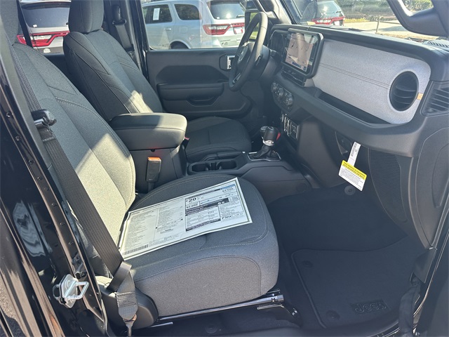 Black Clearcoat 2025 Jeep Wrangler Sport S 4D Sport Utility Sport S 8-Speed Automatic 3.6L V6 24V VVT 4WD PRICE REDUCED TO SELL BY MONTH END, 110 MPH Vehicle Max Speed Calibration, 4-Wheel Disc Brakes, 8 Speakers, ABS brakes, Advanced Brake Assist, Air Conditioning, AM/FM radio: SiriusXM, Apple CarPlay/Android Auto, Automatic Headlamps, Aux Battery, Brake assist, Cloth Low-Back Bucket Seats, Compass, Corning Gorilla Glass, Deep Tint Sunscreen Windows, Delay-off headlights, Driver door bin, Driver vanity mirror, Dual front impact airbags, Dual front side impact airbags, Electronic Stability Control, Enhanced Adaptive Cruise Control, Front anti-roll bar, Front Bucket Seats, Front Center Armrest w/Storage, Front fog lights, Front reading lights, Full Speed Forward Collision Warning Plus, Illuminated entry, Integrated roll-over protection, Low tire pressure warning, Non-Lock Fuel Cap w/o Discriminator, Normal Duty Suspension, Occupant sensing airbag, Outside temperature display, Overhead airbag, Panic alarm, ParkView Rear Back-Up Camera, Passenger door bin, Passenger vanity mirror, Power Heated Mirrors, Power steering, Power Top Quarter Window Storage Bag, Power windows, Premium Wrapped Steering Wheel, Quick Order Package 24S Sport S, Radio data system, Radio: Uconnect 5 w/12.3" Display, Rear anti-roll bar, Rear reading lights, Rear Window Defroster, Rear Window Wiper/Washer, Remote keyless entry, Removable Rear Quarter Windows, Security Alarm, Sky 1-Touch Power Top, Speed control, Split folding rear seat, Steering wheel mounted audio controls, Stop-Start Dual Battery System, Sun Visors w/Illuminated Vanity Mirrors, Tachometer, Telescoping steering wheel, Tilt steering wheel, Traction control, Trip computer, Wheels: 17" x 7.5" Gray.