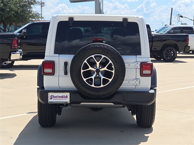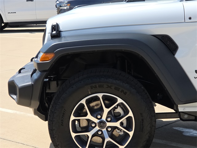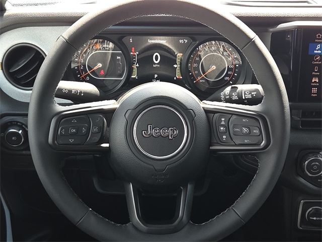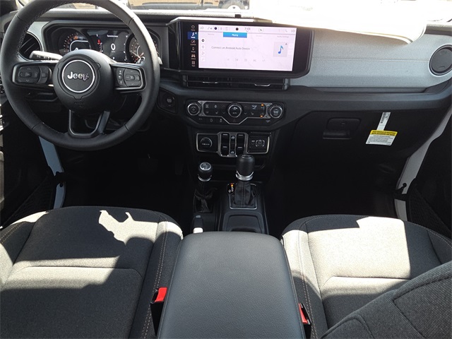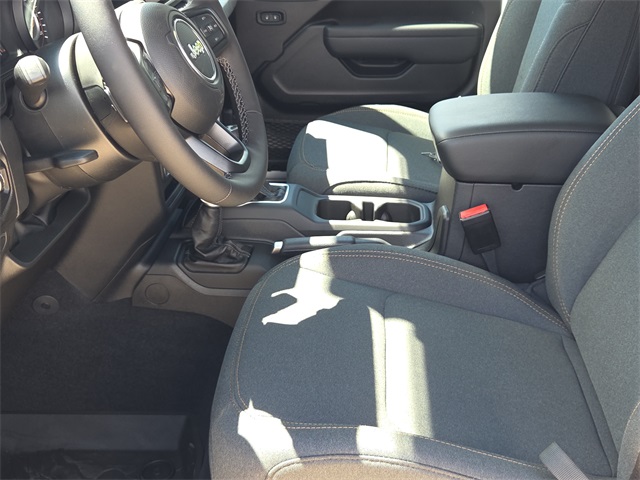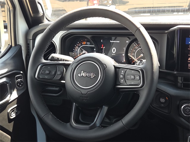 2025 Jeep Wrangler Sport S 4D Sport Utility Bright White Clearcoat 4WD 8-Speed Automatic 3.6L V6 24V VVT This vehicle comes well equipped with Convenience Group (2-Door Passive Entry, Front Door Locks, Air Conditioning w/Auto Temperature Control, Air Filtering, Cluster 7.0" TFT Color Display, Emergency/Assistance Call, Heated Front Seats, Heated Steering Wheel, Remote Start System, and Universal Garage Door Opener), Quick Order Package 24S Sport S (Advanced Brake Assist, Automatic Headlamps, Corning Gorilla Glass, Deep Tint Sunscreen Windows, Enhanced Adaptive Cruise Control, Full Speed Forward Collision Warning Plus, Power Heated Mirrors, Premium Wrapped Steering Wheel, Security Alarm, Sun Visors w/Illuminated Vanity Mirrors, and Wheels: 17" x 7.5" Gray), 110 MPH Vehicle Max Speed Calibration, 3.45 Overall Top Gear Ratio, 4-Wheel Disc Brakes, 8 Speakers, ABS brakes, Air Conditioning, AM/FM radio: SiriusXM, Apple CarPlay/Android Auto, Aux Battery, Brake assist, Cloth Low-Back Bucket Seats, Compass, Delay-off headlights, Driver door bin, Driver vanity mirror, Dual front impact airbags, Dual front side impact airbags, Electronic Stability Control, Front anti-roll bar, Front Bucket Seats, Front Center Armrest w/Storage, Front fog lights, Front reading lights, Illuminated entry, Integrated roll-over protection, Low tire pressure warning, MOPAR All-Weather Floor Mats, Non-Lock Fuel Cap w/o Discriminator, Normal Duty Suspension, Occupant sensing airbag, Outside temperature display, Overhead airbag, Panic alarm, ParkView Rear Back-Up Camera, Passenger door bin, Passenger vanity mirror, Power steering, Power Top Quarter Window Storage Bag, Power windows, Radio data system, Radio: Uconnect 5 w/12.3" Display, Rear anti-roll bar, Rear reading lights, Rear Window Defroster, Rear Window Wiper/Washer, Remote keyless entry, Removable Rear Quarter Windows, Sky 1-Touch Power Top, Speed control, Split folding rear seat, Steering wheel mounted audio controls, Stop-Start Dual Battery System, Tachometer, Telescoping steering wheel, Tilt steering wheel, Traction control, Trip computer, Variably intermittent wipers, Wheels: 17" x 7.5" Black Steel Styled, and Wheels: 17" x 7.5" Machined w/Black Pockets.