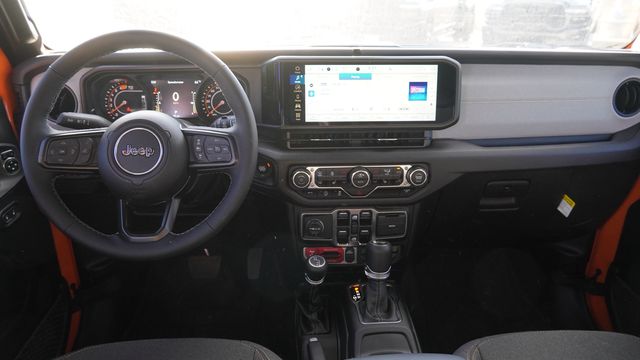 This Wrangler Willys comes well equipped with Convenience Group (2-Door Passive Entry, Front Door Locks, Air Conditioning w/Auto Temperature Control, Air Filtering, Cluster 7.0" TFT Color Display, Emergency/Assistance Call, Heated Front Seats, Heated Steering Wheel, Remote Start System, and Universal Garage Door Opener), Quick Order Package 24W Willys (4-Wheel Drive Swing Gate Decal, 7 & 4 Pin Wiring Harness, 97 MPH Vehicle Max Speed Calibration, Advanced Brake Assist, Automatic Headlamps, Auxiliary Switches, Black Grille, Class II Receiver Hitch, Conventional Differential Front Axle, Corning Gorilla Glass, Dana M210 Wide HD Tube Front Axle, Dana M220 Wide Rear Axle, Daytime Running Lamps LED Accents, Deep Tint Sunscreen Windows, E-Locker Rear Axle, Enhanced Adaptive Cruise Control, Front LED Fog Lamps, Full Speed Forward Collision Warning Plus, Injection Molded Black Rear Bumper, LED Premium Reflector Headlamps, Mold In Color Bumper w/Gloss Black, Molded in Color Rubicon Highline Flare, MOPAR All-Weather Floor Mats, Off-Road Plus Mode, Power Heated Mirrors, Premium Wrapped Steering Wheel, Security Alarm, Sun Visors w/Illuminated Vanity Mirrors, Wheels: 17" x 7.5" Painted Black, Willy's Suspension, and Willys Hood Decal), Xtreme 35" Tire Package (35" Tire Suspension, Anti-Lock 4-Wheel Disc Perf Brakes, MOPAR Hinge-Gate Reinforcement, Wheel Flare Extensions, and Wheels: 17" x 8" Machined w/Black Pockets), 110 MPH Vehicle Max Speed Calibration, 4-Wheel Disc Brakes, 8 Speakers, ABS brakes, Air Conditioning, AM/FM radio: SiriusXM, Apple CarPlay/Android Auto, Aux Battery, Brake assist, Cloth Low-Back Bucket Seats, Compass, Delay-off headlights, Driver door bin, Driver vanity mirror, Dual front impact airbags, Dual front side impact airbags, Electronic Stability Control, Front anti-roll bar, Front Bucket Seats, Front Center Armrest w/Storage, Front fog lights, Front reading lights, Illuminated entry, Integrated roll-over protection, Low tire pressure warning, Non-Lock Fuel Cap w/o Discriminator, Normal Duty Suspension, Occupant sensing airbag, Outside temperature display, Overhead airbag, Panic alarm, ParkView Rear Back-Up Camera, Passenger door bin, Passenger vanity mirror, Power steering, Power Top Quarter Window Storage Bag, Power windows, Radio data system, Radio: Uconnect 5 w/12.3" Display, Rear anti-roll bar, Rear reading lights, Rear Window Defroster, Rear Window Wiper/Washer, Remote keyless entry, Removable Rear Quarter Windows, Sky 1-Touch Power Top, Speed control, Split folding rear seat, Steering wheel mounted audio controls, Stop-Start Dual Battery System, Tachometer, Telescoping steering wheel, Tilt steering wheel, Traction control, Trip computer, Variably intermittent wipers, and Wheels: 17" x 7.5" Black Steel Styled.