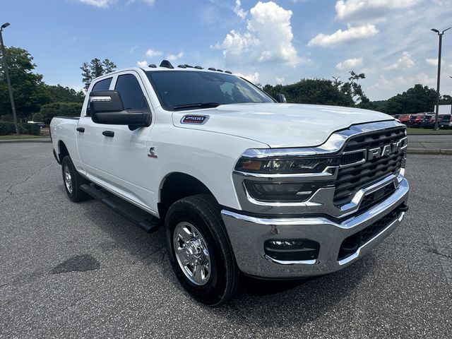 Bright White Clearcoat 2025 Ram 2500 Tradesman 4D Crew Cab Tradesman 8-Speed Automatic 6.7L I6 4WD 115V Auxiliary Front Power Outlet, 12" Touchscreen Display, 2 Way Rear Headrest Seat, 4 Way Front Headrests, 4-Wheel Disc Brakes, 40/20/40 Split Bench Seat, 400W Inverter, 4G LTE Wi-Fi Hot Spot, 6 Speakers, ABS brakes, Air Conditioning, Air Conditioning ATC w/Dual Zone Control, Alexa Built-In, AM/FM radio: SiriusXM, Anti-Spin Differential Rear Axle, Apple CarPlay, Apple CarPlay/Android Auto, Auto Power-Folding Mirrors, Auto-Dimming Rear-View Mirror, Black Exterior Mirrors, Black Wheel Center Hub, Blind Spot & Cross Path Detection, Brake assist, Bright Front Bumper, Bright Rear Bumper, Carpet Floor Covering, Center Hub, Chrome Grille Surround, Clearance Lamps, Cloth 40/20/40 Bench Seat, Compass, Connected Travel & Traffic Services, Connectivity - US/Canada, CTR Stop Lamp w/Cargo View Camera, Delay-off headlights, Disassociated Touchscreen Display, Driver door bin, Dual front impact airbags, Dual front side impact airbags, Electronic Stability Control, Emergency Vehicle Alert System (EVAS), Exterior 115V AC Outlet, Exterior Mirrors Courtesy Lamps, Exterior Mirrors w/Heating Element, Exterior Mirrors w/Supplemental Signals, Forward & Reverse Utility Lights, Front & Rear Floor Mats, Front anti-roll bar, Front Armrest w/Cupholders, Front Center Armrest w/Storage, Front fog lights, Front reading lights, Fully automatic headlights, Global Telematics Box Module (TBM), Google Android Auto, GPS Antenna Input, GPS Navigation, HD Radio, Heavy Duty Vinyl 40/20/40 Split Bench Seat, Illuminated entry, Integrated Voice Command w/Bluetooth, LED Tail Lamps, Low tire pressure warning, Manual Adjust 4-Way Driver Seat, Manual Adjust 4-Way Front Passenger Seat, Manual Folding Exterior Mirrors, Manual Telescoping Mirrors, Matte Black Mesh Grille w/Chrome, Mirror Running Lights, Mopar Black Tubular Side Steps, Occupant sensing airbag, Off-Road Info Pages, Outside temperature display, Overhead airbag, Overhead console, Panic alarm, ParkSense Front/Rear Park Assist System, ParkView Rear Back-Up Camera, Passenger door bin, Passenger vanity mirror, Power Adjust Mirrors, Power Adjustable Convex Aux Mirrors, Power Heated Folding Telescope Mirrors, Power Heated Folding Telescopic Mirrors, Power steering, Power Telescoping Mirrors, Power windows, Quick Order Package 24A Tradesman, Radio data system, Radio: Uconnect 5 Nav w/12.0" Display, Radio: Uconnect 5 w/8.4" Display, Rear anti-roll bar, Rear Folding Seat, Rear Power Sliding Window, Rear step bumper, Rear window defroster, Red Tail Lamp Bezels, Remote keyless entry, Remote USB Port - Charge Only, Selectable Tire Fill Alert, SiriusXM Radio Service, SiriusXM w/360L, Speed control, Storage Tray, Surround View Camera System, Tachometer, Tilt steering wheel, Tinted Acoustic Windshield Glass, Towing Technology Group, Traction control, Tradesman Level 2 Equipment Group, Trailer Reverse Guidance, Trailer Tire Pressure Monitoring System, Trailer Tow Pages, Voltmeter, Wheels: 18" x 8.0" Steel Chrome Clad.