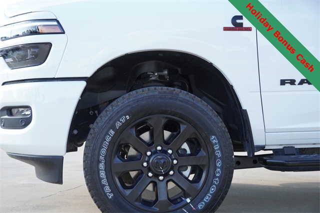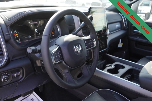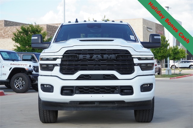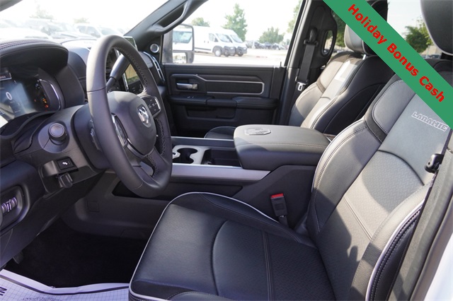 2500 Laramie, 4D Crew Cab, 6.7L I6, 8-Speed Automatic, 4WD, Bright White Clearcoat, Black Leather, #1 Seat Foam Cushion, 115V Auxiliary Rear Power Outlet, 14.4" Touchscreen Display, 17 Speaker harman/kardon Premium Sound, 2 Way Rear Headrest Seat, 2nd Row In Floor Storage Bins, 4 Way Front Headrests, 4G LTE Wi-Fi Hot Spot, 5th Wheel/Gooseneck Towing Prep Group, Active Lane Management System, Adaptive Steering System, Alexa Built-In, Anti-Spin Differential Rear Axle, Apple CarPlay, Auto Adjust In Reverse Exterior Mirrors, Auto Dim Exterior Mirror, Auto High Beam Headlamp Control, Auto Power-Folding Mirrors, Auto-Dimming Exterior Passenger Mirror, Black Exterior Mirrors, Black Exterior Truck Badging, Black Wheel Center Hub, Body Color Grille Surround, Bucket Seats, Chrome Exterior Mirrors, Connected Travel & Traffic Services, Connectivity - US/Canada, CTR Stop Lamp w/Cargo View Camera, Disassociated Touchscreen Display, Drowsy Driver Detection, Dual Wireless Charging Pad, Emergency Vehicle Alert System (EVAS), Exterior Mirrors Courtesy Lamps, Exterior Mirrors w/Heating Element, Exterior Mirrors w/Memory, Exterior Mirrors w/Supplemental Signals, Foam Bottle Insert (Door Trim Panel), Folding Flat Load Floor Storage, Forward & Reverse Utility Lights, Front Seat Back Map Pockets, Full Length Upgraded Floor Console, Global Telematics Box Module (TBM), Gloss Black Grille Billets/Accents, Google Android Auto, GPS Antenna Input, GPS Navigation, HD Radio, Heated Front Seats, Heated front seats, Heated Steering Wheel, High Back Seats, Integrated Voice Command w/Bluetooth, Laramie Level 2 Plus Equipment Group, Leather Trim 40/20/40 Bench Seat, Leather Trimmed Bucket Seats, LED Bed Lighting, Mirror Running Lights, MOPAR Deployable Bed Step, MOPAR Spray In Bedliner, Night Edition, Off-Road Info Pages, Power 2-Way Driver Lumbar Adjust, Power 2-Way Passenger Lumbar Adjust, Power Adjust 8-Way Driver Seat, Power Adjust 8-Way Front Passenger Seat, Power Adjust Mirrors, Power Adjustable Convex Aux Mirrors, Power Adjustable Pedals w/Memory, Power Deployable Running Boards, Power Heated Fold Telescopic Mirrors w/Memory, Power Telescoping Mirrors, Quick Order Package 24H Laramie, Radio: Uconnect 5 Nav w/14.4" Display, Rain Sensitive Windshield Wipers, Rear 60/40 Folding Seat, Remote Tailgate Release, Selectable Tire Fill Alert, SiriusXM Radio Service, SiriusXM w/360L, Sport Performance Hood, Surround View Camera System, Towing Technology Group, Traffic Sign Recognition, Trailer Reverse Guidance, Trailer Tire Pressure Monitoring System, Trailer Tow Pages, Wheels: 20" x 8.0" Black Painted Aluminum.