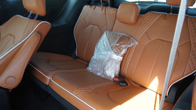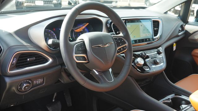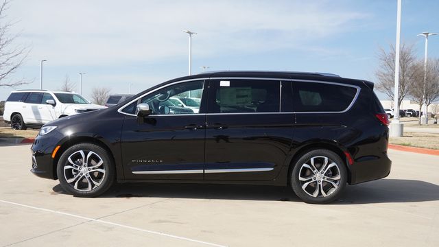 This Pacifica Pinnacle comes well equipped with Quick Order Package 27S, 19 Speakers, 3.25 Axle Ratio, 3rd row seats: split-bench, 4-Wheel Disc Brakes, A/V remote, ABS brakes, Air Conditioning, Alloy wheels, AM/FM radio: SiriusXM 360L, Apple CarPlay/Android Auto, Audio memory, Auto-dimming door mirrors, Auto-dimming Rear-View mirror, Automatic temperature control, Bodyside moldings, Brake assist, Bumpers: body-color, Compass, Delay-off headlights, Driver door bin, Driver vanity mirror, Dual front impact airbags, Dual front side impact airbags, Electronic Stability Control, Emergency communication system: Chrysler Connect, Four wheel independent suspension, Front anti-roll bar, Front Bucket Seats, Front Center Armrest, Front dual zone A/C, Front fog lights, Front reading lights, Fully automatic headlights, Garage door transmitter, harman/kardon® Speakers, Headphones, Heated door mirrors, Heated front seats, Heated rear seats, Heated steering wheel, Illuminated entry, Knee airbag, Low tire pressure warning, Lumbar Pillow, Memory seat, Navigation System, Occupant sensing airbag, Outside temperature display, Overhead airbag, Overhead console, Panic alarm, ParkView Rear Back-Up Camera, Passenger door bin, Passenger vanity mirror, Power door mirrors, Power driver seat, Power Liftgate, Power moonroof, Power passenger seat, Power steering, Power windows, Premium Leather Trimmed Bucket Seats, Radio data system, Radio: Uconnect 5 Nav with 10.1" Display, Rain sensing wipers, Rear air conditioning, Rear reading lights, Rear window defroster, Rear window wiper, Reclining 3rd row seat, Remote keyless entry, Roof rack, Security system, Sepia Seat Color, Speed control, Split folding rear seat, Spoiler, Steering wheel mounted audio controls, Tachometer, Telescoping steering wheel, Tilt steering wheel, Touring Suspension, Traction control, Trip computer, Turn signal indicator mirrors, Variably intermittent wipers, Ventilated front seats, Voltmeter, and Wheels: 20" x 7.5" Paint/Polish Aluminum Design 2.