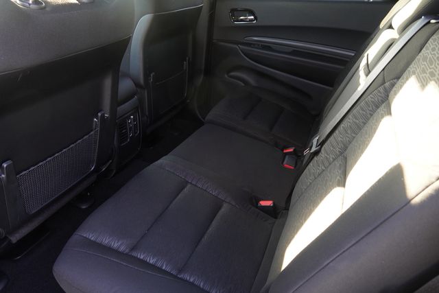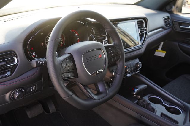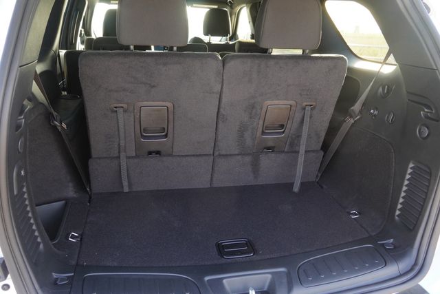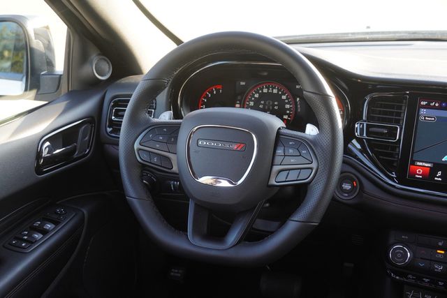 This Durango GT comes well equipped with Quick Order Package 2BD GT, 18" x 8" Painted Aluminum Wheels, 3.27 Rear Axle Ratio, 3rd row seats: split-bench, 4-Wheel Disc Brakes, 6 Speakers, ABS brakes, Air Conditioning, Alloy wheels, AM/FM radio: SiriusXM w/360L, Apple CarPlay/Android Auto, Auto-dimming Rear-View mirror, Auto-leveling suspension, Automatic temperature control, Brake assist, Bumpers: body-color, Compass, Delay-off headlights, Driver door bin, Driver vanity mirror, Dual front impact airbags, Dual front side impact airbags, Electronic Stability Control, Emergency communication system: Dodge Connect, Four wheel independent suspension, Front anti-roll bar, Front Bucket Seats, Front Center Armrest w/Storage, Front dual zone A/C, Front License Plate Bracket, Front reading lights, Fully automatic headlights, Garage door transmitter, Gloss Black Exterior Mirrors, Heated door mirrors, Heated front seats, Heated steering wheel, Illuminated entry, Knee airbag, Leather steering wheel, Low tire pressure warning, Navigation System, Occupant sensing airbag, Outside temperature display, Overhead airbag, Overhead console, Panic alarm, ParkView Rear Back-Up Camera, Passenger door bin, Passenger vanity mirror, Power door mirrors, Power driver seat, Power Liftgate, Power steering, Power windows, Radio data system, Rear air conditioning, Rear anti-roll bar, Rear Load Leveling Suspension, Rear reading lights, Rear seat center armrest, Rear window defroster, Rear window wiper, Remote keyless entry, Speed control, Speed-sensing steering, Speed-Sensitive Wipers, Split folding rear seat, Spoiler, Sport steering wheel, Steering wheel mounted audio controls, Tachometer, Telescoping steering wheel, Tilt steering wheel, Traction control, Trip computer, Variably intermittent wipers, and Voltmeter.