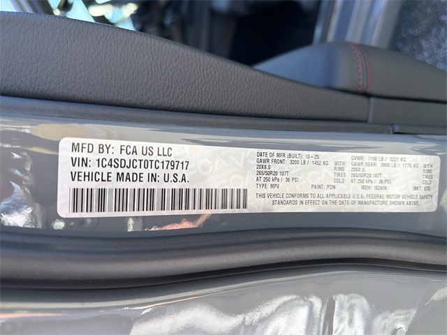 Destroyer Gray Clearcoat 2026 Dodge Durango GT Plus HEMI V8 4D Sport Utility GT Plus HEMI V8 8-Speed Automatic HEMI 5.7L V8 Multi Displacement VVT AWD Bluetooth, Backup Camera, 4 Wheel Drive, Navigation, Hemi, APPLE CAR PLAY ANDROID AUTO, ALLOY WHEELS, THIRD ROW SEAT, PRICE REDUCED TO SELL BY MONTH END, 115V Auxiliary Power Outlet, 7 & 4 Pin Wiring Harness, Adaptive Cruise Control w/Stop, Auto High Beam Headlamp Control, Auto-Dimming Exterior Driver Mirror, Black Roof Rails, Blind Spot w/Trailer Detection, Class IV Receiver Hitch, Dual Remote USB Port - Charge Only, Exterior Mirrors w/Heating Element, Exterior Mirrors w/Memory, Exterior Mirrors w/Supplemental Signals, Floor Console w/Leather Armrest, Full Speed Forward Collision Warning Plus, Gloss Black Exterior Mirrors, Heated Second Row Seats, Integrated Roof Rail Crossbars, Leather Trimmed Bucket Seats, Leather Wrapped Door Panels, LED Auxiliary Low Beam & Turn Signal, Power 6x9 Multi-Function Foldaway Mirrors, Power 8-Way Driver Memory 8-Way Passenger Seats, Power Driver/Passenger 4-Way Lumbar Adjust, Power Sunroof, Power Tilt & Telescopic Steering Column, Quick Order Package 22T GT Plus, Radio/Driver Seat/Mirrors Memory, Red Accent Stitching, Trailer Brake Control, Ventilated Front Seats.