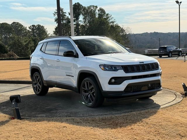 bright white clearcoat 2026 Jeep Compass Latitude 4D Sport Utility Latitude 8-Speed Automatic 2.0L I4 DOHC 4WD PRICE REDUCED TO SELL BY MONTH END, 10.1" Touchscreen Display, 3.73 Final Drive Ratio, 4-Wheel Disc Brakes, 4G LTE Wi-Fi Hot Spot, 6 Speakers, ABS brakes, Air Conditioning, Altitude Special Edition, AM/FM radio: SiriusXM, Auto High-beam Headlights, Automatic temperature control, Black Day Light Opening Moldings, Bluetooth Handsfree Phone and Audio, Brake assist, Bumpers: body-color, Compass, Delay-off headlights, Driver door bin, Driver vanity mirror, Dual front impact airbags, Dual front side impact airbags, Electronic Stability Control, Emergency communication system: SiriusXM Guardian, Four wheel independent suspension, Front anti-roll bar, Front Bucket Seats, Front Center Armrest w/Storage, Front fog lights, Front reading lights, Fully automatic headlights, Global Telematics Box Module, Gloss Black Surround/Neutral Gray Rings, Heated door mirrors, Heated front seats, Heated steering wheel, Illuminated entry, Knee airbag, Leather Shift Knob, Leather steering wheel, Low tire pressure warning, Neutral Gray Exterior Badging, Occupant sensing airbag, Outside temperature display, Overhead airbag, Overhead console, Panic alarm, ParkView Rear Back-Up Camera, Passenger door bin, Passenger vanity mirror, Piano Black Interior Accents, Power door mirrors, Power steering, Power windows, Premium audio system: UConnect 5, Premium Cloth/Vinyl Bucket Seats, Quick Order Package 29N Altitude, Radio: Uconnect 5 with 8.4" Display, Rear anti-roll bar, Rear seat center armrest, Rear window defroster, Rear window wiper, Remote keyless entry, Security system, SiriusXM Satellite Radio, Sliding Sun Visors with Illuminated Mirrors, Speed control, Split folding rear seat, Spoiler, Steering wheel mounted audio controls, Tachometer, Telescoping steering wheel, Tilt steering wheel, Traction control, Trip computer, Variably intermittent wipers, Wheels: 18" x 7" Gloss Black Painted Aluminum.