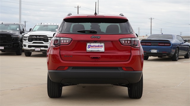 This Compass Latitude comes well equipped with Quick Order Package 29N Altitude (10.1" Touchscreen Display, Altitude Special Edition, Black Day Light Opening Moldings, Gloss Black Surround/Neutral Gray Rings, Neutral Gray Exterior Badging, Piano Black Interior Accents, Sliding Sun Visors with Illuminated Mirrors, and Wheels: 18" x 7" Gloss Black Painted Aluminum), 17" x 7" Aluminum Wheels, 3.73 Final Drive Ratio, 4-Wheel Disc Brakes, 4G LTE Wi-Fi Hot Spot, 6 Speakers, ABS brakes, Air Conditioning, AM/FM radio: SiriusXM, Auto High-beam Headlights, Automatic temperature control, Bluetooth Handsfree Phone and Audio, Brake assist, Bumpers: body-color, Compass, Delay-off headlights, Driver door bin, Driver vanity mirror, Dual front impact airbags, Dual front side impact airbags, Electronic Stability Control, Emergency communication system: SiriusXM Guardian, Four wheel independent suspension, Front anti-roll bar, Front Bucket Seats, Front Center Armrest w/Storage, Front fog lights, Front License Plate Bracket, Front reading lights, Fully automatic headlights, Global Telematics Box Module, Heated door mirrors, Heated front seats, Heated steering wheel, Illuminated entry, Knee airbag, Leather Shift Knob, Leather steering wheel, Low tire pressure warning, Occupant sensing airbag, Outside temperature display, Overhead airbag, Overhead console, Panic alarm, ParkView Rear Back-Up Camera, Passenger door bin, Passenger vanity mirror, Power door mirrors, Power steering, Power windows, Premium audio system: UConnect 5, Premium Cloth/Vinyl Bucket Seats, Radio: Uconnect 5 with 8.4" Display, Rear anti-roll bar, Rear seat center armrest, Rear window defroster, Rear window wiper, Remote keyless entry, Security system, SiriusXM Satellite Radio, Speed control, Split folding rear seat, Spoiler, Steering wheel mounted audio controls, Tachometer, Telescoping steering wheel, Tilt steering wheel, Traction control, Trip computer, Variably intermittent wipers, and Wheels: 19" x 7.5" Aluminum Painted.