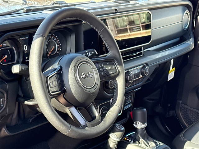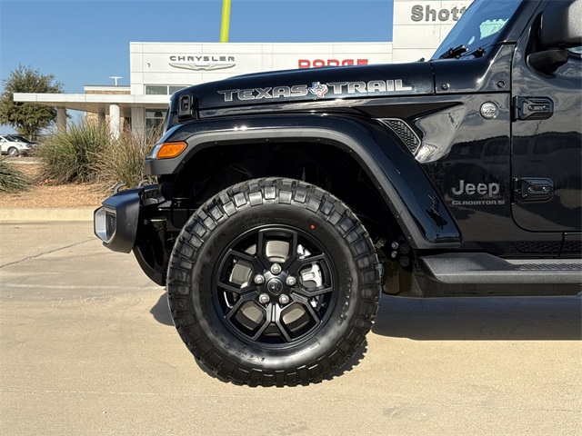 2026 Jeep Gladiator Texas Trail 4D Crew Cab black clearcoat 4WD 8-Speed Automatic 3.6L V6 24V VVT This vehicle comes well equipped with Convenience Group (Air Conditioning with Auto Temp Control, Cluster 7.0" TFT Color Display, Corning Gorilla Glass, Daytime Running Lamp System, Emergency/Assistance Call, Front Door Locks 2-Door Passive Entry, Heated Front Seats, Heated Steering Wheel, Remote Start System, and Universal Garage Door Opener), LED Headlamp and Fog Lamp Group (Daytime Running Lamps LED Accents, Front LED Fog Lamps, and LED Premium Reflector Headlamps), Quick Order Package 24J Texas Trail (2-Piece Body Color Fender Flares, Advanced Brake Assist, Automatic Headlamps, Body Color 3-Piece Hard Top, Central ADAS Decision Module (CADM), Deep Tint Sunscreen Windows, Freedom Panel Storage Bag, Full Length Floor Console Premium Armrest, Full Speed Forward Collision Warning Plus, Hard Seat Back, Leather Wrapped Park Brake Handle, Leather Wrapped Shift Knob, Power 4-Way Driver Lumbar Adjust, Power 4-Way Passenger Lumbar Adjust, Power Adjust 8-Way Driver Seat, Power Adjust 8-Way Front Passenger Seat, Power Heated Mirrors, Premium Door Trim Panel, Premium McKinley Trimmed Seats, Premium Wrapped Steering Wheel, Rear Armrest with Cupholder Seat, Rear Sliding Window, Rear Window Defroster, Security Alarm, Side Steps, Sun Visors with Illuminated Vanity Mirrors, Texas Trail, Texas Trail Tailgate and Hood Decals, Wheels: 17" x 7.5" Painted Black, and Willys Suspension), 110 Mph Vehicle Max Speed Calibration, 12.3" Touchscreen Display, 3.73 Rear Axle Ratio, 4-Wheel Disc Brakes, 4G LTE Wi-Fi Hot Spot, 8 Speakers, ABS brakes, Air Conditioning, Alexa Built-in, AM/FM radio: SiriusXM with 360L, Apple CarPlay, Apple CarPlay/Android Auto, Brake assist, Compass, Connectivity - US/Canada, Delay-off headlights, Driver door bin, Driver vanity mirror, Dual front impact airbags, Dual front side impact airbags, Electronic Stability Control, Front anti-roll bar, Front Bucket Seats, Front Center Armrest w/Storage, Front fog lights, Front License Plate Bracket, Front reading lights, Google Android Auto, Illuminated entry, Integrated roll-over protection, Low tire pressure warning, MOPAR All-Weather Slush Mats, MOPAR Spray in Bedliner, Normal Duty Suspension, Occupant sensing airbag, Outside temperature display, Overhead airbag, Panic alarm, ParkView Rear Back-Up Camera, Passenger door bin, Passenger vanity mirror, Power steering, Power windows, Radio data system, Radio: Uconnect 5 with 12.3" Display, Rear anti-roll bar, Rear reading lights, Remote keyless entry, Speed control, Split folding rear seat, Steering wheel mounted audio controls, Tachometer, Telescoping steering wheel, Tilt steering wheel, Traction control, Trip computer, USB Host Flip, Variably intermittent wipers, Voltmeter, and Wheels: 17" x 7.5" Black Steel Styled.