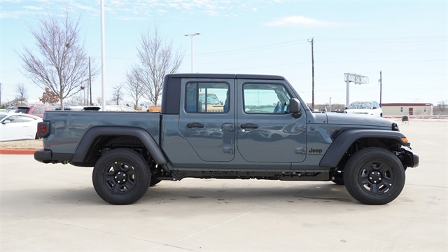 This Gladiator Sport comes well equipped with Quick Order Package 24B Sport, 110 Mph Vehicle Max Speed Calibration, 12.3" Touchscreen Display, 3.73 Rear Axle Ratio, 4-Wheel Disc Brakes, 4G LTE Wi-Fi Hot Spot, 8 Speakers, ABS brakes, Air Conditioning, Alexa Built-in, AM/FM radio: SiriusXM with 360L, Apple CarPlay, Apple CarPlay/Android Auto, Black 3-Piece Hard Top, Brake assist, Compass, Connectivity - US/Canada, Delay-off headlights, Driver door bin, Driver vanity mirror, Dual front impact airbags, Dual front side impact airbags, Electronic Stability Control, For Details, Visit DriveUconnect.com, Freedom Panel Storage Bag, Front anti-roll bar, Front Bucket Seats, Front Center Armrest w/Storage, Front fog lights, Front License Plate Bracket, Front reading lights, Google Android Auto, Illuminated entry, Integrated Center Stack Radio, Integrated roll-over protection, Low tire pressure warning, Normal Duty Suspension, Occupant sensing airbag, Outside temperature display, Overhead airbag, Panic alarm, ParkView Rear Back-Up Camera, Passenger door bin, Passenger vanity mirror, Power steering, Power windows, Radio data system, Radio: Uconnect 5 with 12.3" Display, Rear anti-roll bar, Rear reading lights, Rear Sliding Window, Rear Window Defroster, Remote keyless entry, SiriusXM Radio Service, SiriusXM with 360L, Speed control, Split folding rear seat, Steering wheel mounted audio controls, Tachometer, Telescoping steering wheel, Tilt steering wheel, Traction control, Trip computer, USB Host Flip, Variably intermittent wipers, Voltmeter, and Wheels: 17" x 7.5" Black Steel StyleD.