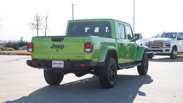 This Gladiator Texas Trail comes well equipped with Convenience Group (Air Conditioning with Auto Temp Control, Cluster 7.0" TFT Color Display, Corning Gorilla Glass, Daytime Running Lamp System, Emergency/Assistance Call, Front Door Locks 2-Door Passive Entry, Heated Front Seats, Heated Steering Wheel, Remote Start System, and Universal Garage Door Opener), LED Headlamp and Fog Lamp Group (Daytime Running Lamps LED Accents, Front LED Fog Lamps, and LED Premium Reflector Headlamps), Quick Order Package 24J Texas Trail (2-Piece Body Color Fender Flares, Advanced Brake Assist, Automatic Headlamps, Body Color 3-Piece Hard Top, Central ADAS Decision Module (CADM), Deep Tint Sunscreen Windows, Freedom Panel Storage Bag, Full Length Floor Console Premium Armrest, Full Speed Forward Collision Warning Plus, Hard Seat Back, Leather Wrapped Park Brake Handle, Leather Wrapped Shift Knob, Power 4-Way Driver Lumbar Adjust, Power 4-Way Passenger Lumbar Adjust, Power Adjust 8-Way Driver Seat, Power Adjust 8-Way Front Passenger Seat, Power Heated Mirrors, Premium Door Trim Panel, Premium McKinley Trimmed Seats, Premium Wrapped Steering Wheel, Rear Armrest with Cupholder Seat, Rear Sliding Window, Rear Window Defroster, Security Alarm, Side Steps, Sun Visors with Illuminated Vanity Mirrors, Texas Trail, Texas Trail Tailgate and Hood Decals, Wheels: 17" x 7.5" Painted Black, and Willys Suspension), 110 Mph Vehicle Max Speed Calibration, 12.3" Touchscreen Display, 3.73 Rear Axle Ratio, 4-Wheel Disc Brakes, 4G LTE Wi-Fi Hot Spot, 8 Speakers, ABS brakes, Air Conditioning, Alexa Built-in, AM/FM radio: SiriusXM with 360L, Apple CarPlay, Apple CarPlay/Android Auto, Brake assist, Compass, Connectivity - US/Canada, Delay-off headlights, Driver door bin, Driver vanity mirror, Dual front impact airbags, Dual front side impact airbags, Electronic Stability Control, Front anti-roll bar, Front Bucket Seats, Front Center Armrest w/Storage, Front fog lights, Front License Plate Bracket, Front reading lights, Google Android Auto, Illuminated entry, Integrated roll-over protection, Low tire pressure warning, Normal Duty Suspension, Occupant sensing airbag, Outside temperature display, Overhead airbag, Panic alarm, ParkView Rear Back-Up Camera, Passenger door bin, Passenger vanity mirror, Power steering, Power windows, Radio data system, Radio: Uconnect 5 with 12.3" Display, Rear anti-roll bar, Rear reading lights, Remote keyless entry, Speed control, Split folding rear seat, Steering wheel mounted audio controls, Tachometer, Telescoping steering wheel, Tilt steering wheel, Traction control, Trip computer, USB Host Flip, Variably intermittent wipers, Voltmeter, and Wheels: 17" x 7.5" Black Steel Styled.