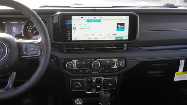This Gladiator Texas Trail comes well equipped with Convenience Group (Air Conditioning with Auto Temp Control, Cluster 7.0" TFT Color Display, Corning Gorilla Glass, Daytime Running Lamp System, Emergency/Assistance Call, Front Door Locks 2-Door Passive Entry, Heated Front Seats, Heated Steering Wheel, Remote Start System, and Universal Garage Door Opener), Quick Order Package 24J Texas Trail (2-Piece Body Color Fender Flares, Advanced Brake Assist, Automatic Headlamps, Body Color 3-Piece Hard Top, Central ADAS Decision Module (CADM), Deep Tint Sunscreen Windows, Freedom Panel Storage Bag, Full Length Floor Console Premium Armrest, Full Speed Forward Collision Warning Plus, Hard Seat Back, Leather Wrapped Park Brake Handle, Leather Wrapped Shift Knob, Power 4-Way Driver Lumbar Adjust, Power 4-Way Passenger Lumbar Adjust, Power Adjust 8-Way Driver Seat, Power Adjust 8-Way Front Passenger Seat, Power Heated Mirrors, Premium Door Trim Panel, Premium McKinley Trimmed Seats, Premium Wrapped Steering Wheel, Rear Armrest with Cupholder Seat, Rear Sliding Window, Rear Window Defroster, Security Alarm, Side Steps, Sun Visors with Illuminated Vanity Mirrors, Texas Trail, Texas Trail Tailgate and Hood Decals, Wheels: 17" x 7.5" Painted Black, and Willys Suspension), 110 Mph Vehicle Max Speed Calibration, 12.3" Touchscreen Display, 3.73 Rear Axle Ratio, 4-Wheel Disc Brakes, 4G LTE Wi-Fi Hot Spot, 8 Speakers, ABS brakes, Air Conditioning, Alexa Built-in, AM/FM radio: SiriusXM with 360L, Apple CarPlay, Apple CarPlay/Android Auto, Brake assist, Compass, Connectivity - US/Canada, Delay-off headlights, Driver door bin, Driver vanity mirror, Dual front impact airbags, Dual front side impact airbags, Electronic Stability Control, Front anti-roll bar, Front Bucket Seats, Front Center Armrest w/Storage, Front fog lights, Front License Plate Bracket, Front reading lights, Google Android Auto, Illuminated entry, Integrated roll-over protection, Low tire pressure warning, Normal Duty Suspension, Occupant sensing airbag, Outside temperature display, Overhead airbag, Panic alarm, ParkView Rear Back-Up Camera, Passenger door bin, Passenger vanity mirror, Power steering, Power windows, Radio data system, Radio: Uconnect 5 with 12.3" Display, Rear anti-roll bar, Rear reading lights, Remote keyless entry, Speed control, Split folding rear seat, Steering wheel mounted audio controls, Tachometer, Telescoping steering wheel, Tilt steering wheel, Traction control, Trip computer, USB Host Flip, Variably intermittent wipers, Voltmeter, and Wheels: 17" x 7.5" Black Steel Styled.