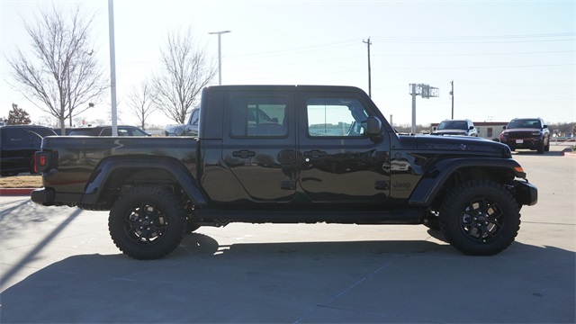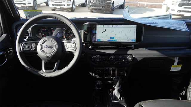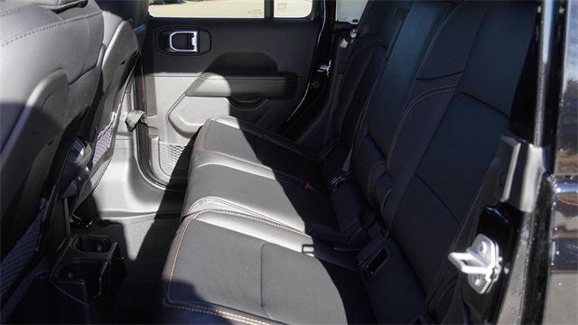 This Gladiator Texas Trail comes well equipped with Convenience Group (Air Conditioning with Auto Temp Control, Cluster 7.0" TFT Color Display, Corning Gorilla Glass, Daytime Running Lamp System, Emergency/Assistance Call, Front Door Locks 2-Door Passive Entry, Heated Front Seats, Heated Steering Wheel, Remote Start System, and Universal Garage Door Opener), LED Headlamp and Fog Lamp Group (Daytime Running Lamps LED Accents, Front LED Fog Lamps, and LED Premium Reflector Headlamps), Quick Order Package 24J Texas Trail (2-Piece Body Color Fender Flares, Advanced Brake Assist, Automatic Headlamps, Body Color 3-Piece Hard Top, Central ADAS Decision Module (CADM), Deep Tint Sunscreen Windows, Freedom Panel Storage Bag, Full Length Floor Console Premium Armrest, Full Speed Forward Collision Warning Plus, Hard Seat Back, Leather Wrapped Park Brake Handle, Leather Wrapped Shift Knob, Power 4-Way Driver Lumbar Adjust, Power 4-Way Passenger Lumbar Adjust, Power Adjust 8-Way Driver Seat, Power Adjust 8-Way Front Passenger Seat, Power Heated Mirrors, Premium Door Trim Panel, Premium McKinley Trimmed Seats, Premium Wrapped Steering Wheel, Rear Armrest with Cupholder Seat, Rear Sliding Window, Rear Window Defroster, Security Alarm, Side Steps, Sun Visors with Illuminated Vanity Mirrors, Texas Trail, Texas Trail Tailgate and Hood Decals, Wheels: 17" x 7.5" Painted Black, and Willys Suspension), 110 Mph Vehicle Max Speed Calibration, 12.3" Touchscreen Display, 3.73 Rear Axle Ratio, 4-Wheel Disc Brakes, 4G LTE Wi-Fi Hot Spot, 8 Speakers, ABS brakes, Air Conditioning, Alexa Built-in, AM/FM radio: SiriusXM with 360L, Apple CarPlay, Apple CarPlay/Android Auto, Brake assist, Compass, Connectivity - US/Canada, Delay-off headlights, Driver door bin, Driver vanity mirror, Dual front impact airbags, Dual front side impact airbags, Electronic Stability Control, Front anti-roll bar, Front Bucket Seats, Front Center Armrest w/Storage, Front fog lights, Front License Plate Bracket, Front reading lights, Google Android Auto, Illuminated entry, Integrated roll-over protection, Low tire pressure warning, Normal Duty Suspension, Occupant sensing airbag, Outside temperature display, Overhead airbag, Panic alarm, ParkView Rear Back-Up Camera, Passenger door bin, Passenger vanity mirror, Power steering, Power windows, Radio data system, Radio: Uconnect 5 with 12.3" Display, Rear anti-roll bar, Rear reading lights, Remote keyless entry, Speed control, Split folding rear seat, Steering wheel mounted audio controls, Tachometer, Telescoping steering wheel, Tilt steering wheel, Traction control, Trip computer, USB Host Flip, Variably intermittent wipers, Voltmeter, and Wheels: 17" x 7.5" Black Steel Styled.