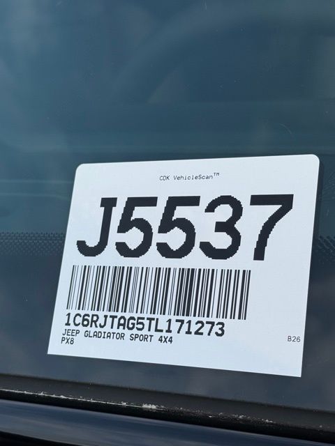 Black Clearcoat 2026 Jeep Gladiator Sport S 4D Crew Cab Sport S 8-Speed Automatic 3.6L V6 24V VVT 4WD PRICE REDUCED TO SELL BY MONTH END, 110 Mph Vehicle Max Speed Calibration, 12.3" Touchscreen Display, 4-Wheel Disc Brakes, 4.10 Rear Axle Ratio, 4G LTE Wi-Fi Hot Spot, 8 Speakers, ABS brakes, Advanced Brake Assist, Air Conditioning, Air Conditioning with Auto Temp Control, Alexa Built-in, Alpine Premium Audio System, AM/FM radio: SiriusXM with 360L, Anti-Spin Differential Rear Axle, Apple CarPlay, Apple CarPlay/Android Auto, Auto High Beam Headlamp Control, Automatic Headlamps, Auxiliary Switches, Black Molded-in-Color Fender Flares (2-Piece), Blind Spot and Cross Path Detection, Brake assist, Class IV Receiver Hitch, Cluster 7.0" TFT Color Display, Compass, Connectivity - US/Canada, Convenience Group, Conventional Differential Front Axle, Corning Gorilla Glass, Dana M210 Wide Front Axle, Dana M220 Wide Rear Axle, Daytime Running Lamp System, Daytime Running Lamps LED Accents, Deep Tint Sunscreen Windows, Delay-off headlights, Driver door bin, Driver vanity mirror, Dual front impact airbags, Dual front side impact airbags, Electronic Stability Control, Emergency/Assistance Call, For Details, Visit DriveUconnect.com, Front anti-roll bar, Front Bucket Seats, Front Center Armrest w/Storage, Front Door Locks 2-Door Passive Entry, Front fog lights, Front LED Fog Lamps, Front reading lights, Full Speed Forward Collision Warning Plus, Google Android Auto, Heated Front Seats, Heated Steering Wheel, Heavy-Duty Engine Cooling, Illuminated entry, Integrated Center Stack Radio, Integrated roll-over protection, LED Headlamp and Fog Lamp Group, LED Premium Reflector Headlamps, LED Taillamps, Low tire pressure warning, Max Tow Package with 4.10 Axle Ratio, MOPAR Satin Black Grille with Satin Black Ring, Normal Duty Plus Suspension, Normal Duty Suspension, Occupant sensing airbag, Outside temperature display, Overhead airbag, Panic alarm, ParkSense Rear Park Assist System, ParkView Rear Back-Up Camera, Passenger door bin, Passenger vanity mirror, Power Heated Mirrors, Power steering, Power windows, Premium Wrapped Steering Wheel, Quick Order Package 24S Sport S, Radio data system, Radio: Uconnect 5 with 12.3" Display, Rear anti-roll bar, Rear reading lights, Remote keyless entry, Remote Start System, Safety Group, Security Alarm, SiriusXM Radio Service, SiriusXM with 360L, Speed control, Split folding rear seat, Steering wheel mounted audio controls, Sun Visors with Illuminated Vanity Mirrors, Tachometer, Telescoping steering wheel, Tilt steering wheel, Traction control, Trailer Hitch Zoom, Trailer Tow and Auxiliary Switch Group, Trip computer, Universal Garage Door Opener, USB Host Flip, Variably intermittent wipers, Voltmeter, Wheels: 17" x 7.5" Gray.