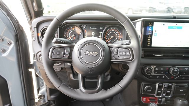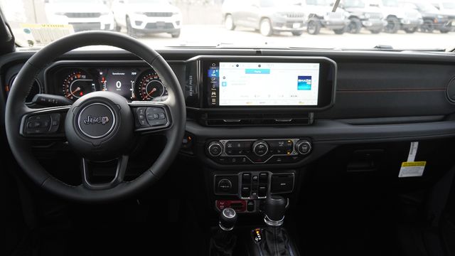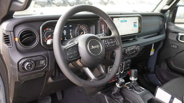 This Gladiator Mojave comes well equipped with Convenience Group (Heated Front Seats, Heated Steering Wheel, Remote Start System, and Universal Garage Door Opener), Quick Order Package 24D Mojave, 110 Mph Vehicle Max Speed Calibration, 12.3" Touchscreen Display, 4-Wheel Disc Brakes, 4.10 Rear Axle Ratio, 4G LTE Wi-Fi Hot Spot, 8 Speakers, ABS brakes, Air Conditioning, Alexa Built-in, Alloy wheels, AM/FM radio: SiriusXM with 360L, Apple CarPlay, Apple CarPlay/Android Auto, Automatic temperature control, Body Color 3-Piece Hard Top, Body Color Rubicon Highline Flare, Brake assist, Compass, Connectivity - US/Canada, Delay-off headlights, Driver door bin, Driver vanity mirror, Dual front impact airbags, Dual front side impact airbags, Electronic Stability Control, Emergency communication system: Jeep Connect, Freedom Panel Storage Bag, Front anti-roll bar, Front Bucket Seats, Front Center Armrest w/Storage, Front dual zone A/C, Front fog lights, Front License Plate Bracket, Front reading lights, Fully automatic headlights, Google Android Auto, Heated door mirrors, Heavy Duty Suspension with Gas Shocks, Illuminated entry, Integrated roll-over protection, Low tire pressure warning, Occupant sensing airbag, Outside temperature display, Overhead airbag, Panic alarm, Passenger door bin, Passenger vanity mirror, Power door mirrors, Power steering, Power windows, Premium Cloth Seats with Sport Bolsters, Radio data system, Radio: Uconnect 5 with 12.3" Display, Rear anti-roll bar, Rear reading lights, Rear Sliding Window, Rear Window Defroster, Remote keyless entry, Security system, Speed control, Split folding rear seat, Steering wheel mounted audio controls, Tachometer, Telescoping steering wheel, Tilt steering wheel, Traction control, Trip computer, USB Host Flip, Variably intermittent wipers, Voltmeter, and Wheels: 17" x 7.5" Dark Gray Painted.