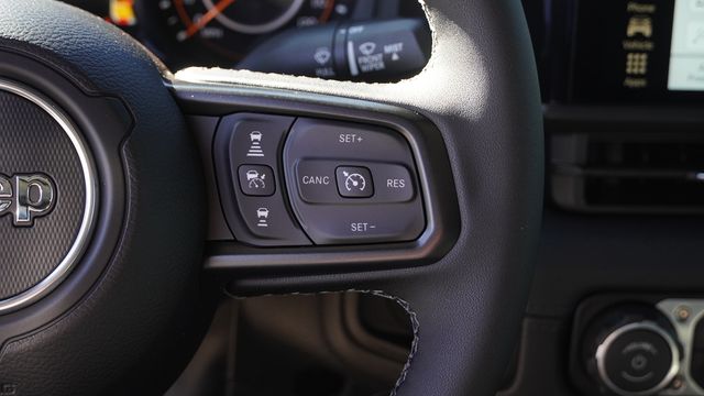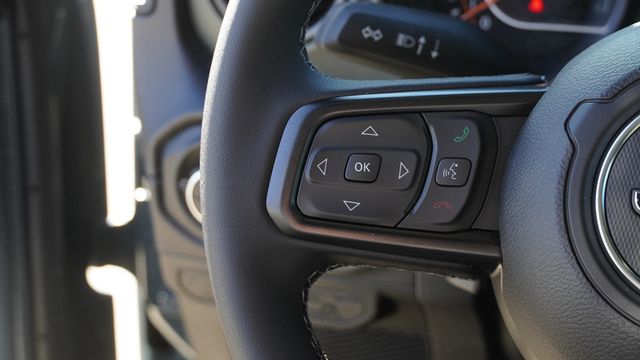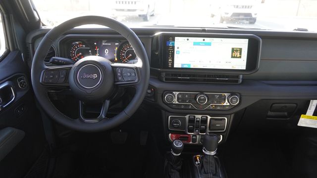 This Gladiator Mojave comes well equipped with Quick Order Package 24A Mojave X (Alpine Premium Audio System, Auto High Beam Headlamp Control, Auto-Dimming Rear-View Mirror, Blind Spot and Cross Path Detection, Bluetooth Wireless Speaker, Body Color 3-Piece Hard Top, Body Color Rubicon Highline Flare, Freedom Panel Storage Bag, Full Length Floor Console Premium Armrest, Heated Front Seats, Heated Steering Wheel, Integrated Off-Road Camera, Integrated Voice Command with Bluetooth, Leather Trimmed Bucket Seats, Leather Wrapped Park Brake Handle, Leather Wrapped Shift Knob, Mojave Top Hood Decal, MOPAR Hardtop Headliner, ParkSense Rear Park Assist System, Power 4-Way Driver Lumbar Adjust, Power 4-Way Passenger Lumbar Adjust, Power Adjust 8-Way Driver Seat, Power Adjust 8-Way Front Passenger Seat, Premium Door Trim Panel, Radio: Uconnect 5 Navigation with 12.3" Display, Rear Armrest with Cupholder Seat, Rear Sliding Window, Rear Window Defroster, Steel Front Bumper, Steel Rear Bumper, Universal Garage Door Opener, and USB Host Flip), 110 Mph Vehicle Max Speed Calibration, 12.3" Touchscreen Display, 4-Wheel Disc Brakes, 4.10 Rear Axle Ratio, 4G LTE Wi-Fi Hot Spot, 8 Speakers, ABS brakes, Air Conditioning, Alexa Built-in, Alloy wheels, AM/FM radio: SiriusXM with 360L, Apple CarPlay, Apple CarPlay/Android Auto, Automatic temperature control, Brake assist, Compass, Connectivity - US/Canada, Delay-off headlights, Driver door bin, Driver vanity mirror, Dual front impact airbags, Dual front side impact airbags, Electronic Stability Control, Emergency communication system: Jeep Connect, For Details, Visit DriveUconnect.com, Front anti-roll bar, Front Bucket Seats, Front Center Armrest w/Storage, Front dual zone A/C, Front fog lights, Front License Plate Bracket, Front reading lights, Fully automatic headlights, Google Android Auto, Heated door mirrors, Heavy Duty Suspension with Gas Shocks, Illuminated entry, Integrated Center Stack Radio, Integrated roll-over protection, Low tire pressure warning, MOPAR All-Weather Slush Mats, Occupant sensing airbag, Outside temperature display, Overhead airbag, Panic alarm, Passenger door bin, Passenger vanity mirror, Power door mirrors, Power steering, Power windows, Premium Cloth Seats with Sport Bolsters, Radio data system, Radio: Uconnect 5 with 12.3" Display, Rear anti-roll bar, Rear reading lights, Remote keyless entry, Security system, SiriusXM Radio Service, SiriusXM with 360L, Speed control, Split folding rear seat, Steering wheel mounted audio controls, Tachometer, Telescoping steering wheel, Tilt steering wheel, Traction control, Trip computer, Variably intermittent wipers, Voltmeter, and Wheels: 17" x 7.5" Dark Gray PainteD.
