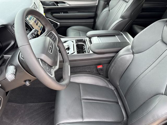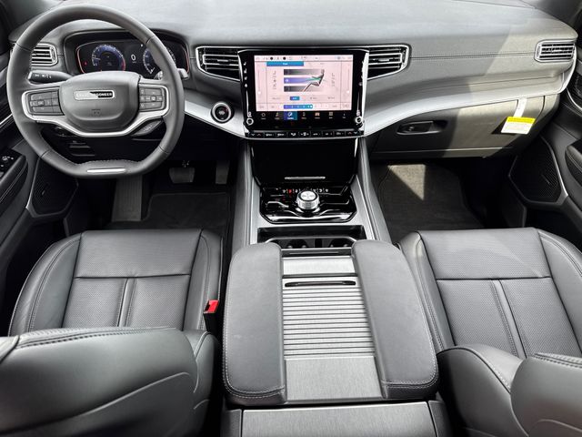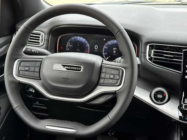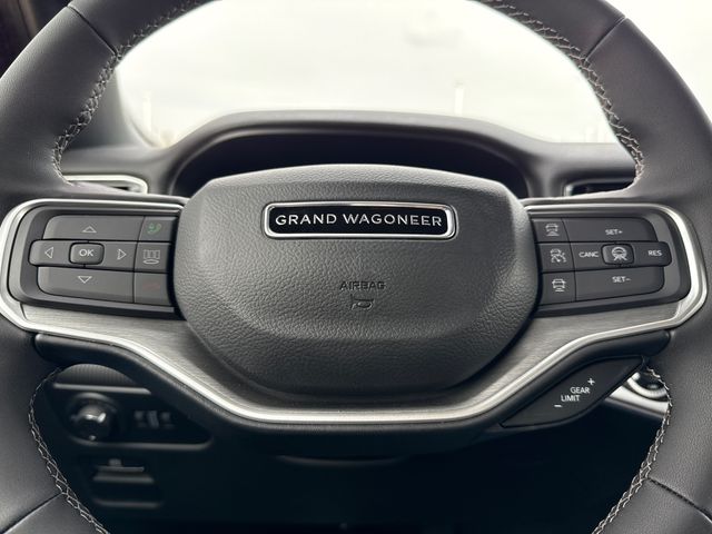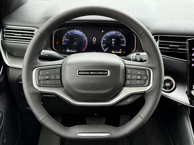 2026 Jeep Grand Wagoneer 4D Sport Utility Black 4WD 8-Speed Automatic 3.0L I6 This vehicle comes well equipped with Premium Group I (3 Panel Sunroof, 3rd Row 60/40 Power Recline Seat, Auto Adjust in Reverse Exterior Mirrors, Auto Power Folding Exterior Mirrors, Auto Power Folding Mirrors, Auto-Dimming Exterior Driver Mirror, Cargo Cover, Exterior Mirrors Approach Lamps, Exterior Mirrors with Memory, Exterior Mirrors with Supplemental Signals, Heated Exterior Mirrors, Interior Rear Facing Camera, Luxury Front and Rear Floor Mats, P and P Park and Unpark Assist with Stop System, Reversible Carpet/Vinyl Cargo Mat, Side Distance Warning, and Surround View Camera System), Quick Order Package 29E Grand Wagoneer, 4D Sport Utility, 3.0L I6, 8-Speed Automatic, 4WD, Black, Black Leather, Apple CarPlay/Android Auto, Auto-leveling suspension, Front Bucket Seats, Heated door mirrors, Heated front seats, Heated steering wheel, Leather Trimmed Bucket Seats, Memory seat, Overhead console, Power door mirrors, Power driver seat, Power Liftgate, Power passenger seat, Power steering, Power windows, Rain sensing wipers, Reclining 3rd row seat, Remote keyless entry, Split folding rear seat, Steering wheel memory, Steering wheel mounted audio controls, Telescoping steering wheel, Tilt steering wheel, and Ventilated front seats Premium Group I (3 Panel Sunroof, 3rd Row 60/40 Power Recline Seat, Auto Adjust in Reverse Exterior Mirrors, Auto Power Folding Exterior Mirrors, Auto Power Folding Mirrors, Auto-Dimming Exterior Driver Mirror, Cargo Cover, Exterior Mirrors Approach Lamps, Exterior Mirrors with Memory, Exterior Mirrors with Supplemental Signals, Heated Exterior Mirrors, Interior Rear Facing Camera, Luxury Front and Rear Floor Mats, P and P Park and Unpark Assist with Stop System, Reversible Carpet/Vinyl Cargo Mat, Side Distance Warning, and Surround View Camera System), Quick Order Package 29E Grand Wagoneer, 4D Sport Utility, 3.0L I6, 8-Speed Automatic, 4WD, Black, Black Leather, Apple CarPlay/Android Auto, Auto-leveling suspension, Front Bucket Seats, Heated door mirrors, Heated front seats, Heated steering wheel, Leather Trimmed Bucket Seats, Memory seat, Overhead console, Power door mirrors, Power driver seat, Power Liftgate, Power passenger seat, Power steering, Power windows, Rain sensing wipers, Reclining 3rd row seat, Remote keyless entry, Split folding rear seat, Steering wheel memory, Steering wheel mounted audio controls, Telescoping steering wheel, Tilt steering wheel, Ventilated front seats, 118 Mph Maximum Speed Calibration, 3.55 Rear Axle Ratio, 3rd row seats: bench, 4-Wheel Disc Brakes, 9 Speakers, ABS brakes, Air Conditioning, Alloy wheels, AM/FM radio: SiriusXM with 360L, Anti-whiplash front head restraints, Audio memory, Auto High-beam Headlights, Auto-dimming door mirrors, Auto-dimming Rear-View mirror, Automatic temperature control, Brake assist, Bumpers: body-color, Compass, Delay-off headlights, Driver door bin, Driver vanity mirror, Driver's Seat Mounted Armrest, Dual front impact airbags, Dual front side impact airbags, Electronic Stability Control, Emergency communication system: Jeep Connect, Exterior Parking Camera Rear, Four wheel independent suspension, Front anti-roll bar, Front Center Armrest w/Storage, Front dual zone A/C, Front fog lights, Front reading lights, Fully automatic headlights, Garage door transmitter, Illuminated entry, Knee airbag, Low tire pressure warning, Navigation System, Normal Duty Suspension, Occupant sensing airbag, Outside temperature display, Overhead airbag, Panic alarm, Passenger door bin, Passenger seat mounted armrest, Passenger vanity mirror, Radio data system, Radio: Uconnect 5 Nav with 12.0" Display, Rear air conditioning, Rear anti-roll bar, Rear reading lights, Rear seat center armrest, Rear window defroster, Rear window wiper, Security system, Speed control, Speed-sensing steering, Speed-Sensitive Wipers, Tachometer, Traction control, Trip computer, Turn signal indicator m