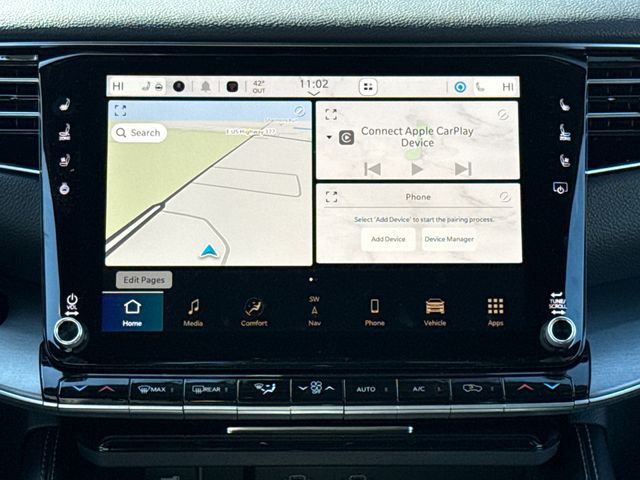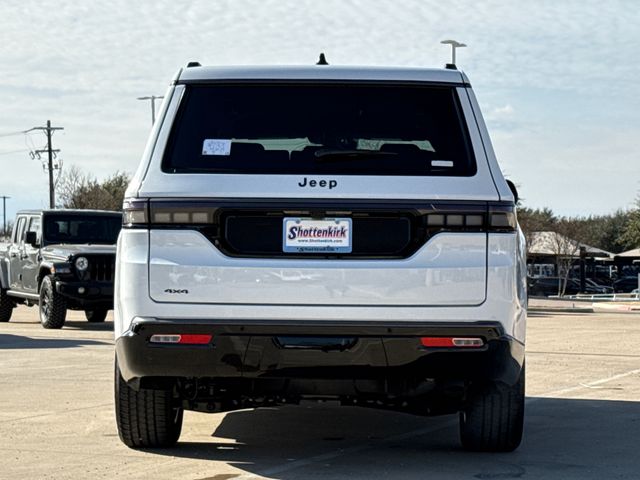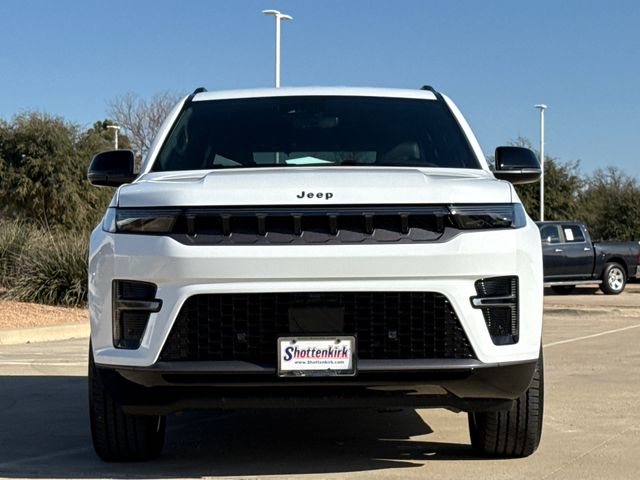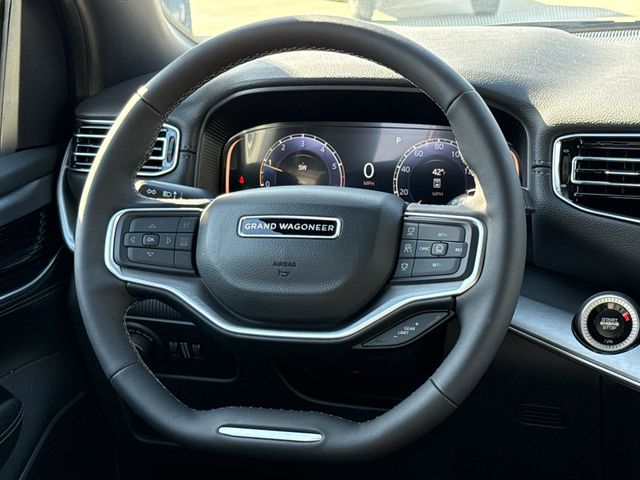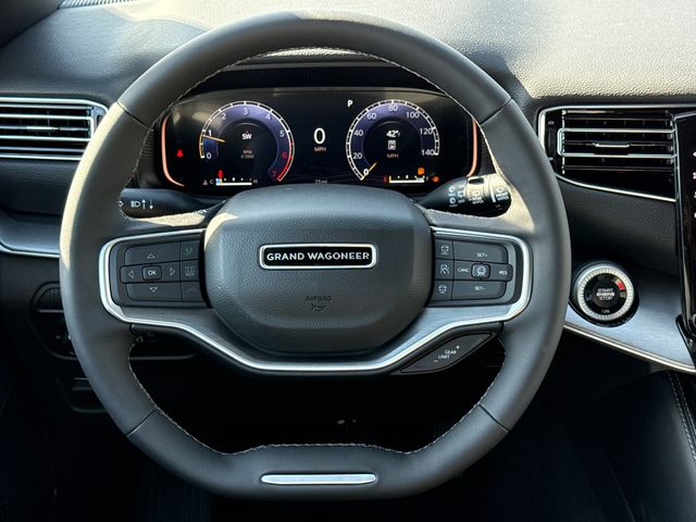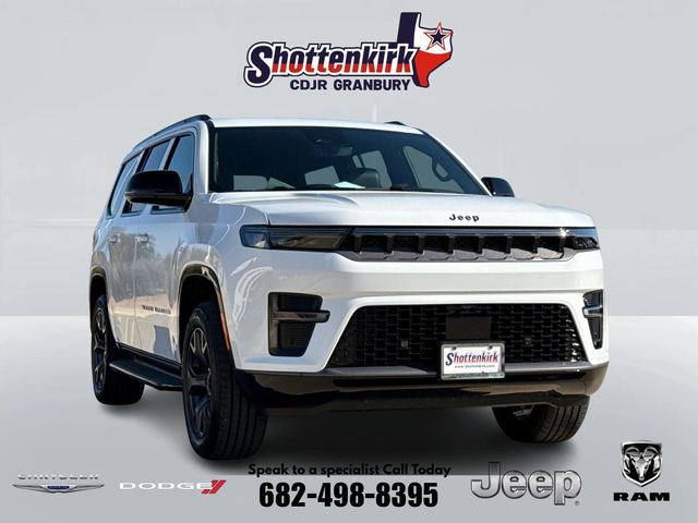 2026 Jeep Grand Wagoneer LIMITED 4D Sport Utility Bright White Clearcoat 4WD 8-Speed Automatic 3.0L I6 This vehicle comes well equipped with ABS brakes, Active Cruise Control, Alloy wheels, Compass, Electronic Stability Control, Front dual zone A/C, Heated door mirrors, Heated Exterior Mirrors, Heated front seats, Heated rear seats, Illuminated entry, Low tire pressure warning, Navigation System, Power Liftgate, Remote keyless entry, and Traction control ABS brakes, Active Cruise Control, Alloy wheels, Compass, Electronic Stability Control, Front dual zone A/C, Heated door mirrors, Heated Exterior Mirrors, Heated front seats, Heated rear seats, Illuminated entry, Low tire pressure warning, Navigation System, Power Liftgate, Remote keyless entry, Traction control, 118 Mph Maximum Speed Calibration, 3.55 Rear Axle Ratio, 3rd row seats: bench, 4-Wheel Disc Brakes, 9 Speakers, Air Conditioning, AM/FM radio: SiriusXM with 360L, Anti-whiplash front head restraints, Apple CarPlay/Android Auto, Audio memory, Auto Adjust in Reverse Exterior Mirrors, Auto High-beam Headlights, Auto-dimming door mirrors, Auto-Dimming Exterior Driver Mirror, Auto-dimming Rear-View mirror, Auto-leveling suspension, Automatic temperature control, Brake assist, Bumpers: body-color, Delay-off headlights, Driver door bin, Driver vanity mirror, Driver's Seat Mounted Armrest, Dual front impact airbags, Dual front side impact airbags, Emergency communication system: Jeep Connect, Exterior Mirrors Approach Lamps, Exterior Mirrors with Memory, Exterior Mirrors with Supplemental Signals, Exterior Parking Camera Rear, Four wheel independent suspension, Front anti-roll bar, Front Bucket Seats, Front Center Armrest w/Storage, Front fog lights, Front reading lights, Fully automatic headlights, Garage door transmitter, Heated steering wheel, Knee airbag, Leather Trimmed Bucket Seats, Memory seat, Normal Duty Suspension, Occupant sensing airbag, Outside temperature display, Overhead airbag, Overhead console, Panic alarm, Passenger door bin, Passenger seat mounted armrest, Passenger vanity mirror, Power door mirrors, Power driver seat, Power passenger seat, Power steering, Power windows, Radio data system, Radio: Uconnect 5 Nav with 12.0" Display, Rain sensing wipers, Rear air conditioning, Rear anti-roll bar, Rear reading lights, Rear seat center armrest, Rear window defroster, Rear window wiper, Reclining 3rd row seat, Security system, Speed control, Speed-sensing steering, Speed-Sensitive Wipers, Split folding rear seat, Steering wheel memory, Steering wheel mounted audio controls, Tachometer, Telescoping steering wheel, Tilt steering wheel, Trip computer, Turn signal indicator mirrors, Variably intermittent wipers, Ventilated front seats, Ventilated rear seats, Voltmeter, and Wheels: 22" x 9" Painted Gloss Black.