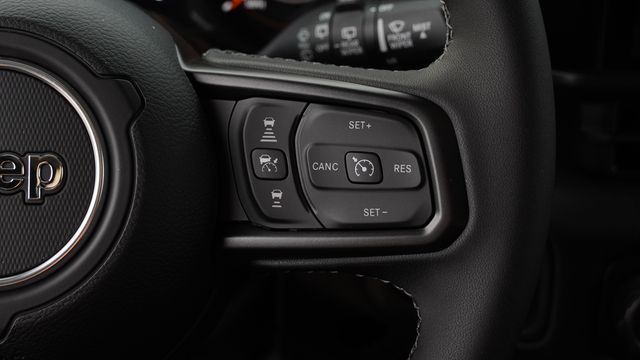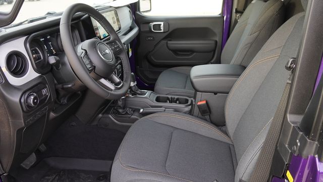 This Wrangler Sport S comes well equipped with Convenience Group (2-Door Passive Entry, Front Door Locks, Air Conditioning with Auto Temp Control, Air Filtering, Cluster 7.0" TFT Color Display, Emergency/Assistance Call, Heated Front Seats, Heated Steering Wheel, and Universal Garage Door Opener), LED Headlamp and Fog Lamp Group (Front LED Fog Lamps and LED Premium Reflector Headlamps), Quick Order Package 22S Sport S (Advanced Brake Assist, Automatic Headlamps, Corning Gorilla Glass, Deep Tint Sunscreen Windows, Enhanced Adaptive Cruise Control, Full Speed Forward Collision Warning Plus, Power Heated Mirrors, Premium Wrapped Steering Wheel, Security Alarm, Sun Visors with Illuminated Vanity Mirrors, and Wheels: 17" x 7.5" Gray), 12.3" Touchscreen Display, 3.45 Overall Top Gear Ratio, 4-Wheel Disc Brakes, 4G LTE Wi-Fi Hot Spot, 8 Speakers, ABS brakes, Air Conditioning, AM/FM radio: SiriusXM with 360L, Apple CarPlay, Apple CarPlay/Android Auto, Aux Battery, Black 3-Piece Hard Top, Brake assist, Cloth Low-Back Bucket Seats, Compass, Connectivity - US/Canada, Delay-off headlights, Driver door bin, Driver vanity mirror, Dual front impact airbags, Dual front side impact airbags, Electronic Stability Control, For More Info, Call 800-643-2112, Freedom Panel Storage Bag, Front anti-roll bar, Front Bucket Seats, Front Center Armrest w/Storage, Front fog lights, Front reading lights, Google Android Auto, Illuminated entry, Integrated Center Stack Radio, Integrated roll-over protection, Low tire pressure warning, MOPAR All-Weather Floor Mats, Non-Lock Fuel Cap Without Discriminator, Normal Duty Suspension, Occupant sensing airbag, Outside temperature display, Overhead airbag, Panic alarm, ParkView Rear Back-Up Camera, Passenger door bin, Passenger vanity mirror, Power steering, Power windows, Radio data system, Radio: Uconnect 5 with 12.3" Display, Rear anti-roll bar, Rear reading lights, Rear Window Defroster, Rear Window Wiper/Washer, Remote keyless entry, SiriusXM Radio Service, SiriusXM with 360L, Speed control, Steering wheel mounted audio controls, Stop-Start Dual Battery System, Tachometer, Telescoping steering wheel, Tilt steering wheel, Traction control, Trip computer, Variably intermittent wipers, and Wheels: 17" x 7.5" Black Steel Styled.