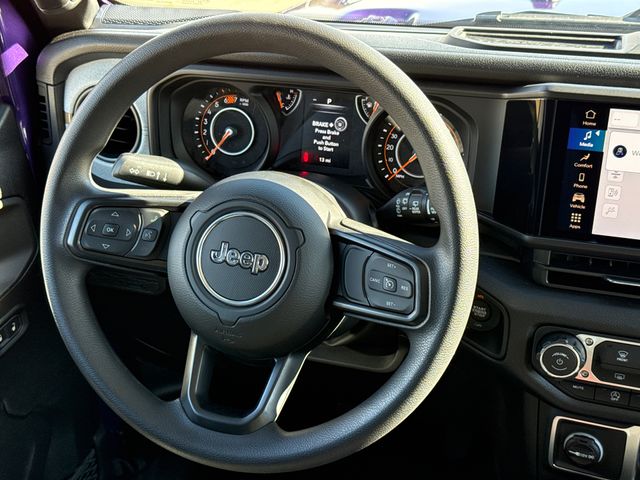2026 Jeep Wrangler Sport 2D Sport Utility reign 4WD 8-Speed Automatic 2.0L I4 DOHC This vehicle comes well equipped with Quick Order Package 22B Sport, Wrangler Sport, 2D Sport Utility, 2.0L I4 DOHC, 4WD, reign, and Black Cloth Quick Order Package 22B Sport, Wrangler Sport, 2D Sport Utility, 2.0L I4 DOHC, 4WD, reign, Black Cloth, 12.3" Touchscreen Display, 3.45 Overall Top Gear Ratio, 4-Wheel Disc Brakes, 4G LTE Wi-Fi Hot Spot, 8 Speakers, ABS brakes, Air Conditioning, AM/FM radio: SiriusXM with 360L, Apple CarPlay, Apple CarPlay/Android Auto, Aux Battery, Black 3-Piece Hard Top, Brake assist, Cloth Low-Back Bucket Seats, Compass, Connectivity - US/Canada, Deep Tint Sunscreen Windows, Delay-off headlights, Driver door bin, Driver vanity mirror, Dual front impact airbags, Dual front side impact airbags, Electronic Stability Control, For More Info, Call 800-643-2112, Freedom Panel Storage Bag, Front anti-roll bar, Front Bucket Seats, Front Center Armrest w/Storage, Front fog lights, Front reading lights, Google Android Auto, Illuminated entry, Integrated Center Stack Radio, Integrated roll-over protection, Low tire pressure warning, MOPAR All-Weather Floor Mats, Non-Lock Fuel Cap Without Discriminator, Normal Duty Suspension, Occupant sensing airbag, Outside temperature display, Overhead airbag, Panic alarm, ParkView Rear Back-Up Camera, Passenger door bin, Passenger vanity mirror, Power steering, Power windows, Radio data system, Radio: Uconnect 5 with 12.3" Display, Rear anti-roll bar, Rear reading lights, Rear Window Defroster, Rear Window Wiper/Washer, Remote keyless entry, SiriusXM Radio Service, SiriusXM with 360L, Speed control, Steering wheel mounted audio controls, Stop-Start Dual Battery System, Tachometer, Telescoping steering wheel, Tilt steering wheel, Traction control, Trip computer, Variably intermittent wipers, Wheels: 17" x 7.5" Black Steel Styled, and Wheels: 17" x 7.5" Gray.