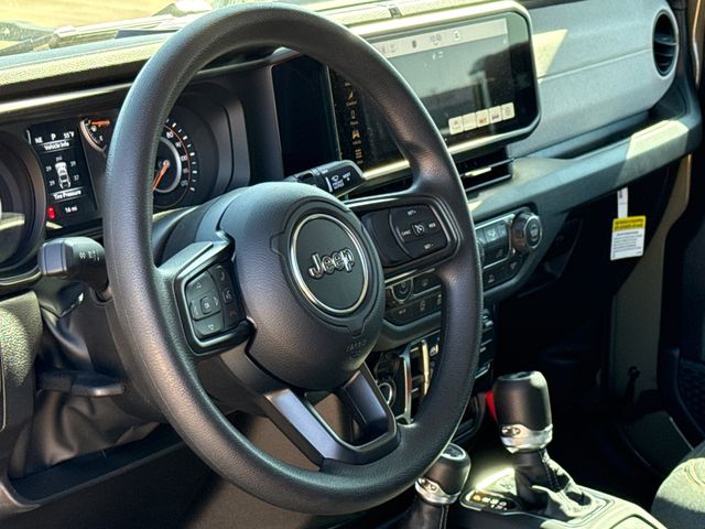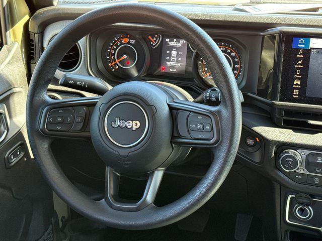 2026 Jeep Wrangler Sport 4D Sport Utility 41 4WD 8-Speed Automatic 3.6L V6 24V VVT This vehicle comes well equipped with Quick Order Package 24B Sport, Wrangler Sport, 4D Sport Utility, 3.6L V6 24V VVT, 4WD, 41, and Black Cloth Quick Order Package 24B Sport, Wrangler Sport, 4D Sport Utility, 3.6L V6 24V VVT, 4WD, 41, Black Cloth, 3.45 Overall Top Gear Ratio, 4-Wheel Disc Brakes, 8 Speakers, ABS brakes, Air Conditioning, AM/FM radio: SiriusXM with 360L, Apple CarPlay/Android Auto, Aux Battery, Black 3-Piece Hard Top, Brake assist, Cloth Low-Back Bucket Seats, Compass, Deep Tint Sunscreen Windows, Delay-off headlights, Driver door bin, Driver vanity mirror, Dual front impact airbags, Dual front side impact airbags, Electronic Stability Control, Engine Oil Cooler, Freedom Panel Storage Bag, Front anti-roll bar, Front Bucket Seats, Front Center Armrest w/Storage, Front fog lights, Front reading lights, Illuminated entry, Integrated roll-over protection, Low tire pressure warning, MOPAR All-Weather Floor Mats, Normal Duty Suspension, Occupant sensing airbag, Outside temperature display, Overhead airbag, Panic alarm, ParkView Rear Back-Up Camera, Passenger door bin, Passenger vanity mirror, Power steering, Power windows, Radio data system, Rear anti-roll bar, Rear reading lights, Rear Window Defroster, Rear Window Wiper/Washer, Remote keyless entry, Speed control, Split folding rear seat, Steering wheel mounted audio controls, Stop-Start Dual Battery System, Tachometer, Telescoping steering wheel, Tilt steering wheel, Traction control, Trip computer, Variably intermittent wipers, and Wheels: 17" x 7.5" Black Steel Styled.
