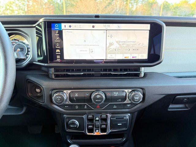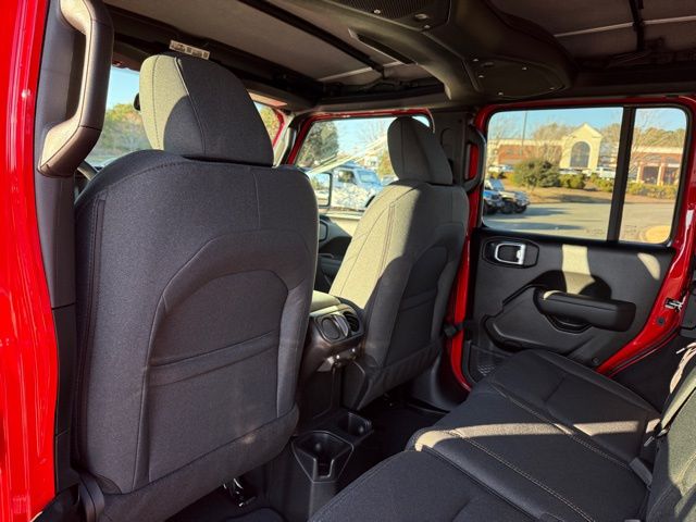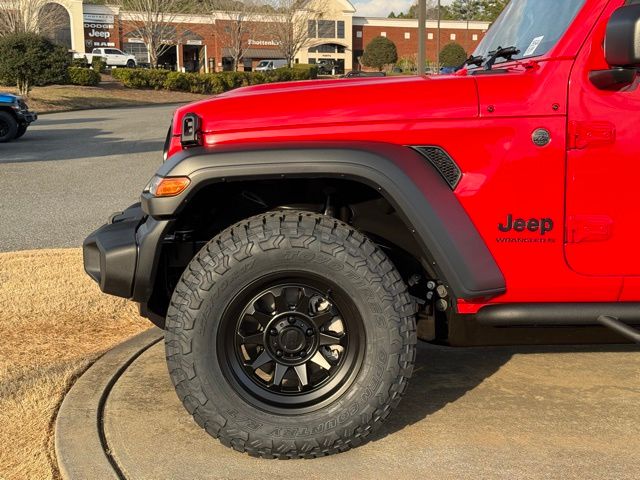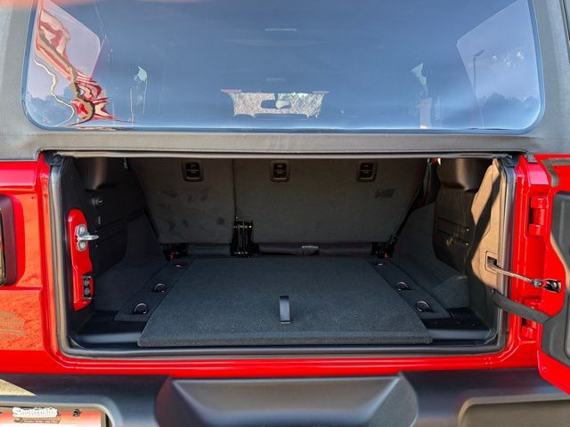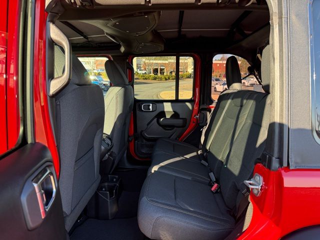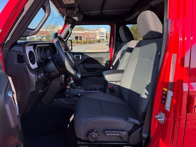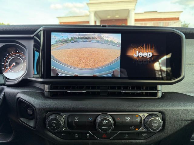 The interior of the Wrangler Sport is designed with your comfort and convenience in mind. Enjoy the convenience of Bluetooth connectivity, a backup camera, and a 12.3-inch touchscreen display with Apple CarPlay and Android Auto integration. The Jeep Trail Rated Kit and premium wheels add an extra touch of rugged style, while the deep tint sunscreen windows and Mopar satin black grille with satin black ring provide a unique and eye-catching appearance.
