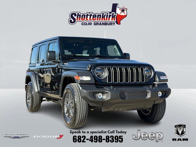2026 Jeep Wrangler Sport S 4D Sport Utility Black Clearcoat 4WD 8-Speed Automatic 3.6L V6 24V VVT This vehicle comes well equipped with Wrangler Sport S, 4D Sport Utility, 3.6L V6 24V VVT, 4WD, Black Clearcoat, Black Cloth, 3.45 Overall Top Gear Ratio, ABS brakes, Compass, Electronic Stability Control, Illuminated entry, Low tire pressure warning, ParkView Rear Back-Up Camera, Remote keyless entry, and Traction control Wrangler Sport S, 4D Sport Utility, 3.6L V6 24V VVT, 4WD, Black Clearcoat, Black Cloth, 3.45 Overall Top Gear Ratio, ABS brakes, Compass, Electronic Stability Control, Illuminated entry, Low tire pressure warning, ParkView Rear Back-Up Camera, Remote keyless entry, Traction control, 12.3" Touchscreen Display, 4-Wheel Disc Brakes, 4G LTE Wi-Fi Hot Spot, 8 Speakers, Air Conditioning, AM/FM radio: SiriusXM with 360L, Apple CarPlay, Apple CarPlay/Android Auto, Aux Battery, Brake assist, Connectivity - US/Canada, Delay-off headlights, Driver door bin, Driver vanity mirror, Dual front impact airbags, Dual front side impact airbags, For More Info, Call 800-643-2112, Front anti-roll bar, Front Bucket Seats, Front Center Armrest w/Storage, Front fog lights, Front reading lights, Google Android Auto, Integrated Center Stack Radio, Integrated roll-over protection, Non-Lock Fuel Cap Without Discriminator, Normal Duty Suspension, Occupant sensing airbag, Outside temperature display, Overhead airbag, Panic alarm, Passenger door bin, Passenger vanity mirror, Power steering, Power windows, Radio data system, Radio: Uconnect 5 with 12.3" Display, Rear anti-roll bar, Rear reading lights, SiriusXM Radio Service, SiriusXM with 360L, Speed control, Split folding rear seat, Steering wheel mounted audio controls, Stop-Start Dual Battery System, Tachometer, Telescoping steering wheel, Tilt steering wheel, Trip computer, Variably intermittent wipers, and Wheels: 17" x 7.5" Black Steel Styled.